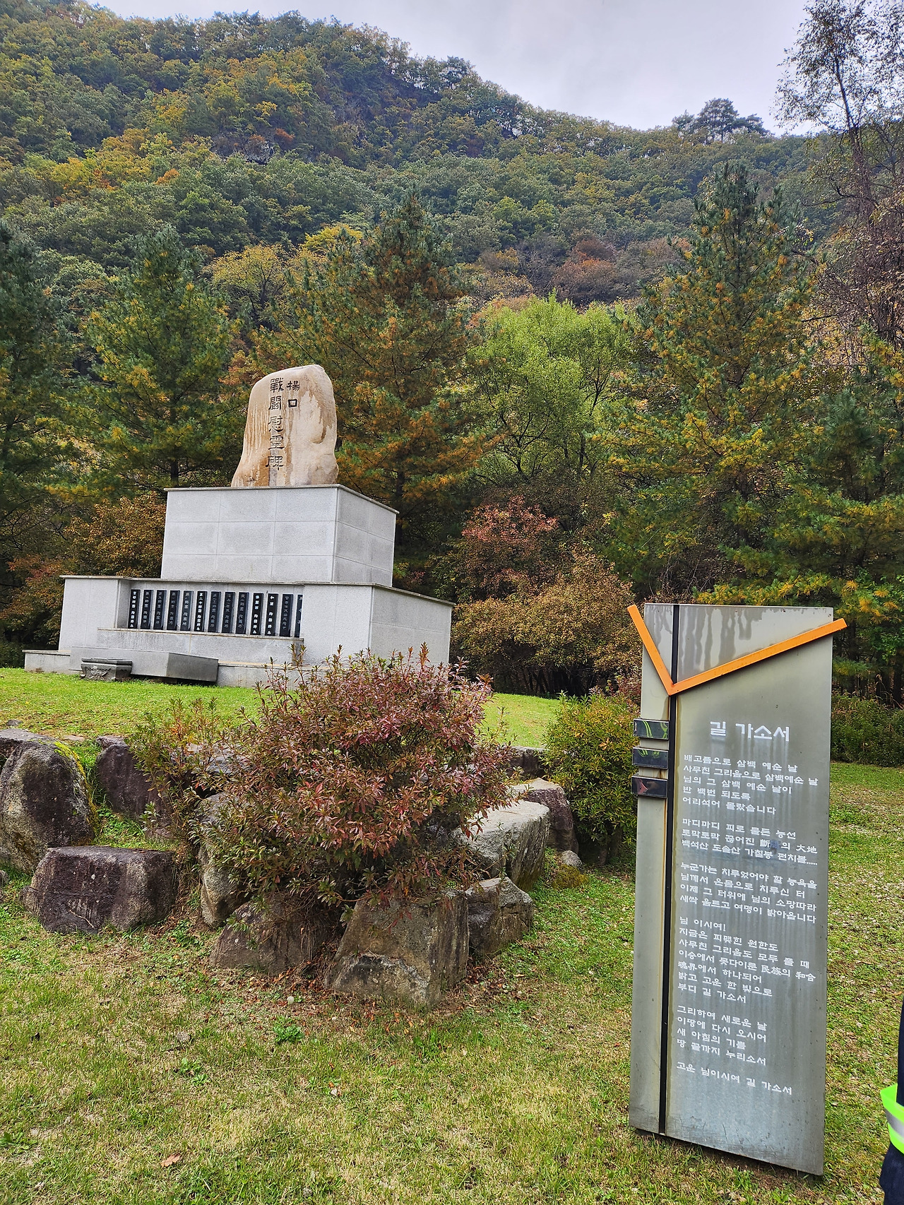 양구수목원(대암산 자락에 있으며, 람사르협약에 따른 국내 최초의 습지이다. 용늪 산양 북방식물 고산성습지로 지리적으로도 중요한 곳). 박수근미술관(앉아있는 두 남자와 드로잉 2002)에는 대표작인 빨래터가 벽화로 재현되어 있으며 가장 한국적인 화가로 알려진다. 나무와 두 여인, 시장, 절구질하는 여인 등 서민적 풍경이 유명하다. 이해인 시문학관의 2층에는 김형석 안병욱 철학의 집도 함께 볼 수 있다. 오래전 신문칼럼에서 만난 안병욱의 인생관(생즉도 생즉학 생즉수 생즉동 : 자기 길을 간다는 것이요, 배우는 일, 갈고닦는 일, 가치창조를 위해 일하는 것이다. 인생이 "운명과 자유의 조우"라고 역설 자유란 칼과 같아. 잘 써야 손을 베지 않듯 도덕과 양심, 정의가 있는 자유를 구가해야 한다)을 상기할 수 있다. 국토정중앙천문대(2007.80cm 반사망원경 중앙로 기네스 4*2m 양구일부 20배 해시계 영침 4.3kg 순금으로 제작) 등 보고 싶은 곳이지만, 오늘의 걷기 코스에서는 건너뛰어야 해서 아쉽습니다.