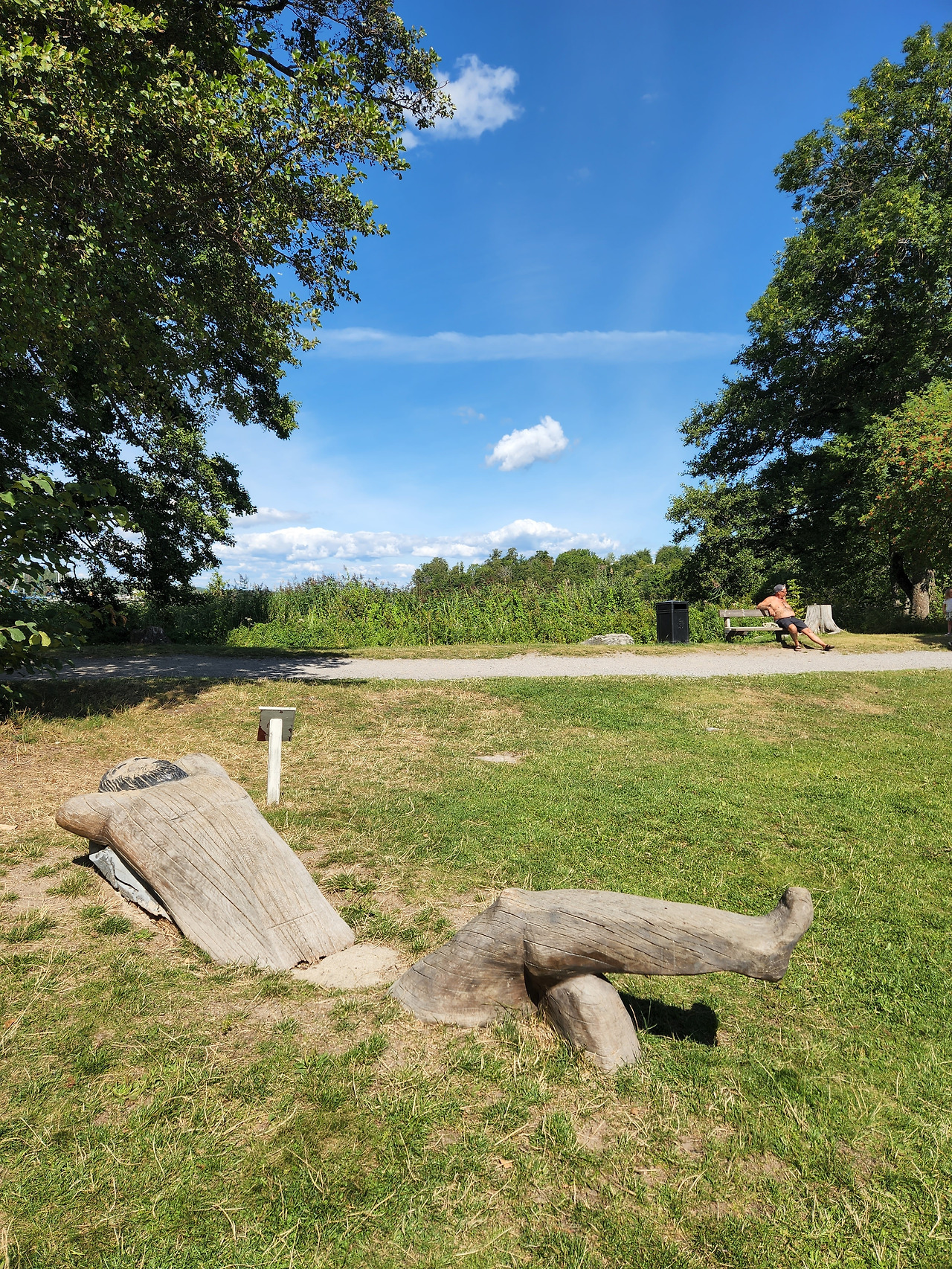 북유럽신화에 나오는 거인 이미르(Ymir) 조각상을 해변에서 만난다. 두 팔로 팔베개하고 다리를 한쪽 다리에 얹어 놓은 채 거인의 허리는 땅속에 잠겨있다. 해변에 누워 신화와 전설을 되뇌며 꿈을 꾸는 듯했다. 거인 이미르는 가장 먼저 창조되고 가장 먼저 죽은 존재였다. 거인의 세계너머는 이미스랜드(Ymisland)로 "산 자의 땅, 빛과 따뜻함이 있는 곳’이라고 했다. 그곳에는 먹을 것과 아름다운 여인들이 넘치는 곳이며 죽지도 않고 질병을 모른다고 했다. 우리의 신화와는 결이 다른 현장을 자그마한 해변에서 확인하는 기쁨이 작지 않았다. 나는 제주도 남쪽 상상의 섬 이어도가 떠올랐고, 해양 민족에게 이미스랜드(Ymisland)는 그들의 염원이었을 것 같았다.