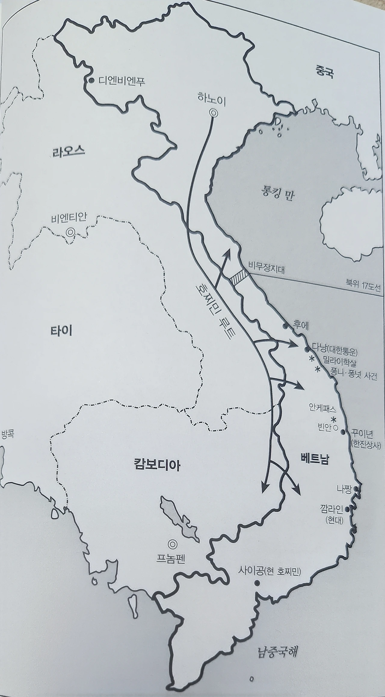 냉전시대 아이젠하워(1953~1961)가 신봉한 도미노이론은 중국의 핵무기개발(1964)로 위협을 느낀 케네디(1961~1963), 존슨(1963~1969)에 이어졌으나, 반전운동의 68 혁명의 영향아래 닉슨(1969~1974)은 닉슨독트린으로 미군 정말철수한다. 2년 후 함락된 사이공은 호찌민으로 이름이 바뀌었다. 역사에 가정이 있겠냐마는 저자는 '베트남을 그대로 놔두었더라면 공산화는 됐을지언정 아시아의 유고슬라비아가 됐을 가능성이 있었다. 게릴라를 이끈 티토는 소련의 패권에 제일 먼저 반기를 들었다. 통일된 지 4년 만에 베트남과 중국 간의 충돌에서 보듯 북거(北拒) 관계에 있던 양국 간의 긴 역사호흡으로 드러났다.'라는 말이 하고 싶은지 모르겠다.