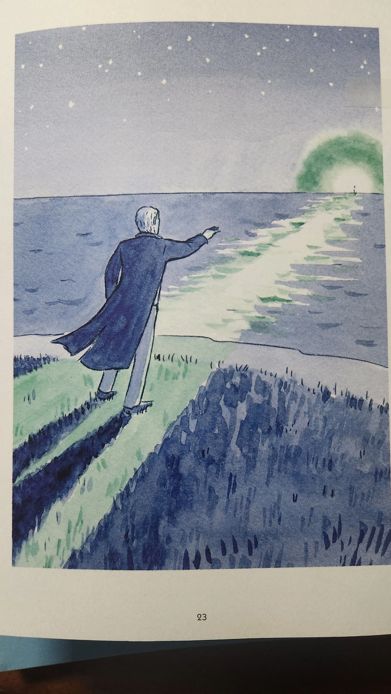 “안개만 끼지 않았더라도 여기에서 당신의 집을 볼 수 있을 텐데…” 개츠비가 나직한 목소리로 말했다. “당신 집의 부두 끝에는 언제나 녹색 등이 켜져 있더군요.” 데이지는 개츠비의 말을 들으며 느닷없이 그의 팔짱을 꼈다. 그런데 지금이 순간은 부두에서 깜빡이는 단순한 녹색등이 되어 버렸고, 그의 마음을 설레게 하던 것 중에 하나가 줄어드는 셈이 된 것이다.