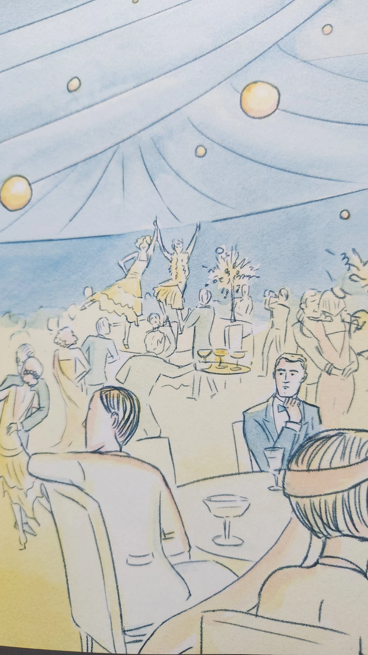 데이지는 열정적인 나이였고, 그녀의 세계는 늘 난초꽃 향기와 쾌락과 세련된 속물근성과 오케스트라가 있었다. 밤새도록 색소폰이 <빌 스트리트의 블루스>의 절망이 담긴 넋두리를 반복하는 동안 100 켤레나 되는 금빛과 은빛의 무도화가 반짝이는 먼지를 피워 올리고 있었다. 그러다가 티타임이 되면 방마다 밝고 상쾌한 열기가 가득 찼고, 새로운 얼굴들은 슬픈 나팔 소리에 놀라 떨어지는 장미꽃처럼 주위를 떠돌아다녔다.