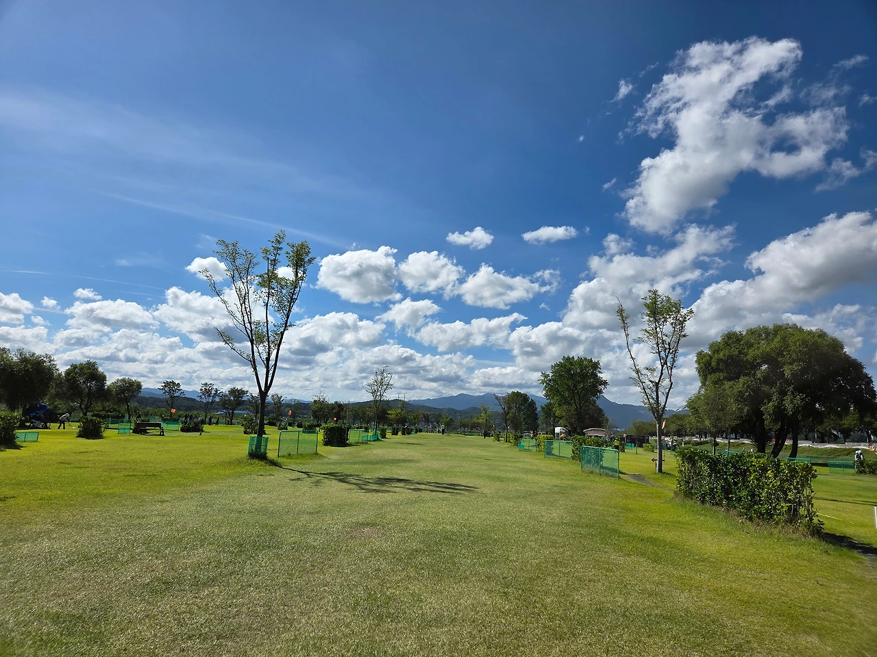 첫 야외 라운딩은 양양 남대천 파크골프장이고 바닷바람도 쐬고 오는 일정이다. 동해로 흘러 세상을 돌고 온 수많은 연어가 회귀해 온다던 그 남대천 수변공원을 이렇게 만났다. 너른 공간에 54홀 파크골프장 입구는 파란 잔디로 가지런하게 연회장의 리셉션 장소처럼 여백의 공간과 주차장까지 넉넉해 좋았다. 가을 하늘의 구름은 높고, 넓고 파아란 캔버스에서 구름이 변화무쌍하였다.