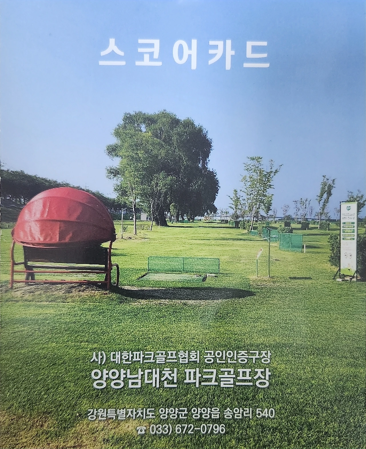 스코어카드에는 송이 연어 은어 황어 대청봉 남대천코스 등 6개의 9홀 코스가 적혀있다. 게임하면서 80홀을 도는 분도 많을 정도로 걷기에도 최적이다. 부부조로 출발한 우리 팀은 스코어 기록할 것도 없는 명랑 파크골프로 한 사람이 버디를 잡으면 모두 버디다. 하지만 골프장에서 비거리 욕심은 사라질 성질이 아닌 병폐요 습성이다. 오버스윙이 금기임을 알면서도 휘두르고 싶다.
