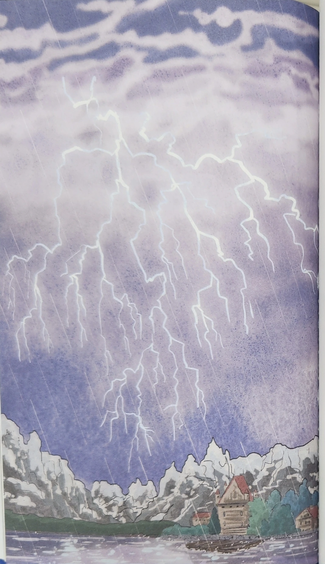 우리를 반갑게 맞이해 준 찬란한 하늘을 최근에는 보기 힘들어. 비가 끝도 없이 와서 우리도 거의 집에만 갇혀 있어. 그러다 태양이 환하게 빛나면 영국에서는 볼 수 없는 장관이 펼쳐지고 열기가 뿜어져 나와. 천둥번개는 점점 더 요란하고 무서워지고 있어. 이런 뇌우는 처음이야. 우리는 호수 반대편에서 폭풍우가 다가오는 모습을 보며 하늘의 여러 지점에서 구름 사이로 번쩍이는 번개를 관찰해. 높이 솟은 쥐라산맥이 하늘에 깔린 구름의 그림자로 검게 변해 있을 때 번개는 그 위에서 지그재그 형태로 쏜살같이 움직이지. 그러는 동안 태양은 우리를 보며 응원하듯 빛나고 있을 거야. 어느 날 밤에는 태어나서 처음 보는 강한 폭풍이 불었어. 호수가 번쩍이자 쥐라산맥의 소나무가 다 보이는 거 있지. 모든 풍경이 순간 하얗게 빛나더니 칠흑 같은 어둠이 찾아왔고 어둠 속에서 머리 위로 무시무시한 천둥이 쳤어.