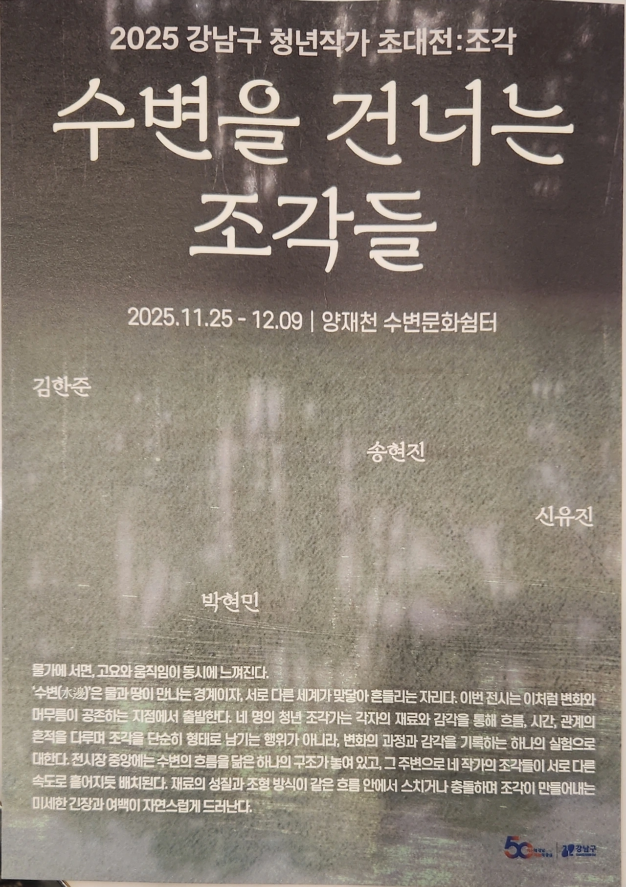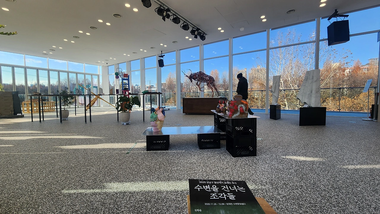 지방자치제가 도입된 이래 각종 문화사업들이 지역별로 활발한 점이 지난 세월을 회상할 때 큰 변화였던 것 같다. 앞서거니 뒤서거니 잘한 것은 금방 입소문을 타게 마련이다. 개성을 살리며 지역거주민과 잘 맞는 자연환경을 만드는 게 눈에 보이고 있다. 대모산을 올라가는 숲길에는 나무로 만든 데크로 걷기 좋게 만들어 유모차도 밀고 다닐 정도이니 노인들도 환영한다. 아이디어를 얻고 실행하는 과정이 어찌 순탄하리오만 공무원들이 노력하고 주민이 활용하는 호응이 이루어낸 결과가 아닐까 싶었다. 먹고사는 데에 특화된 세대를 살았으므로 체화된 틀을 벗어나는 데에는 무수한 보이지 않는 손들이 서로 상승작용을 만들어왔을 것이다. 주눅 들어 멈칫거려서도 안되었고 용기를 내어 예산을 낭비하지 않되 공감을 얻을 기획은 이미 그 자체로 예술 같은 일이었다. 청년들의 조각작품들을 보면서 한 사회가 어떻게 희망을 키워나갈지를 생각하며 감사하게 느낀 순간이었다. 실력 있는 예술가가 있어야 가능한 것인지 창의적인 공무원이 필요한 건지 구청장의 리더십을 먼저 살펴야 하는지 한 국가의 시스템을 잘 만들어야 하는지 경제가 우선인지 아닌지 등 물끄러미 작품들을 보고 있다.