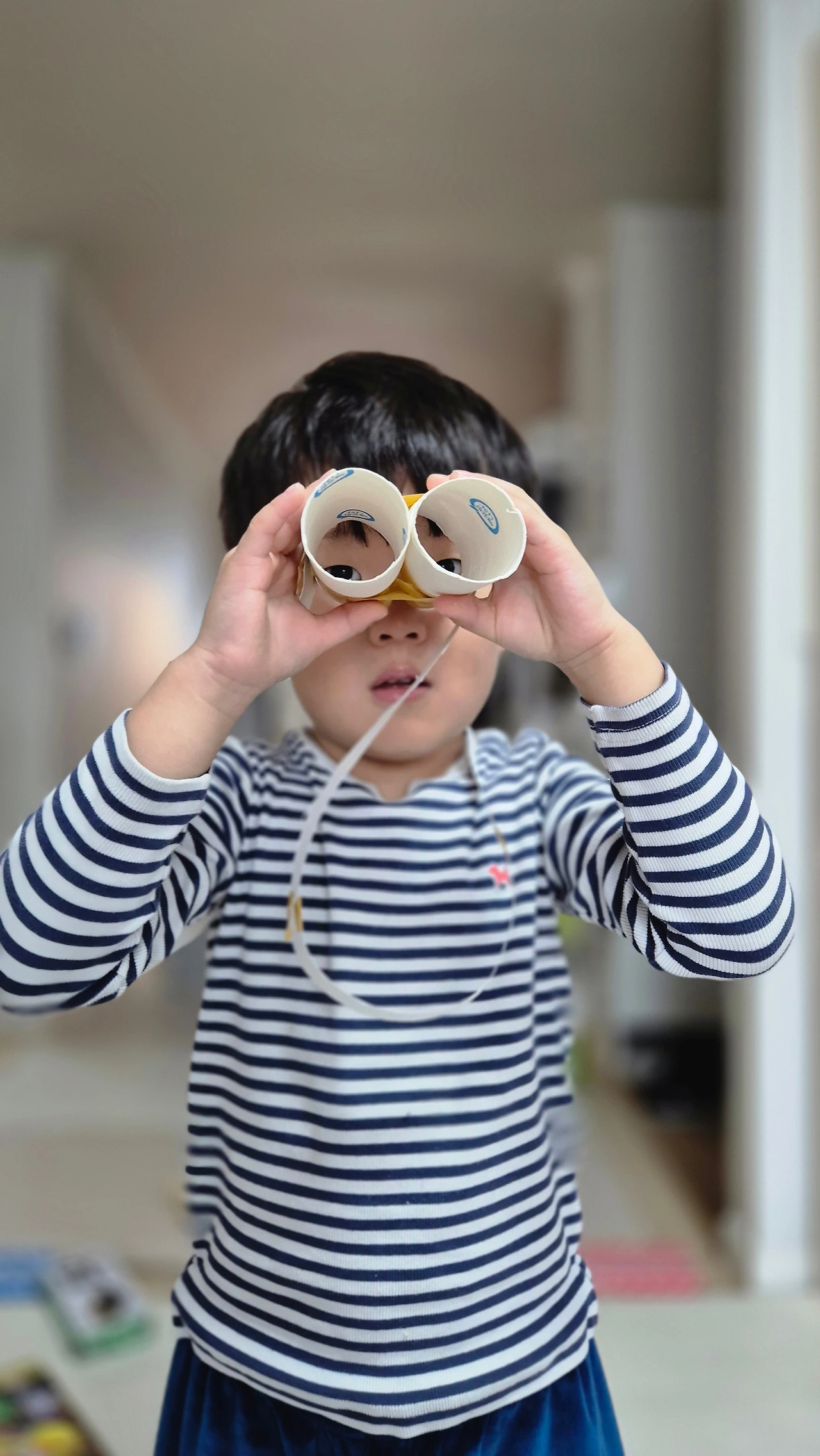 수안이가 휴지심 두 개를 가지고 망원경을 만들었다. 종이를 쓱쓱 잘라 목에 맬 수 있게 줄도 만들어줬다. 수현이가 손을 뻗어 망원경을 잡으려는 찰나 종이로 만든 줄은 이내 끊어졌고 수안이는 수현이가 자신이 만든 걸 망쳤다며 고래고래 소리지르며 울었다.