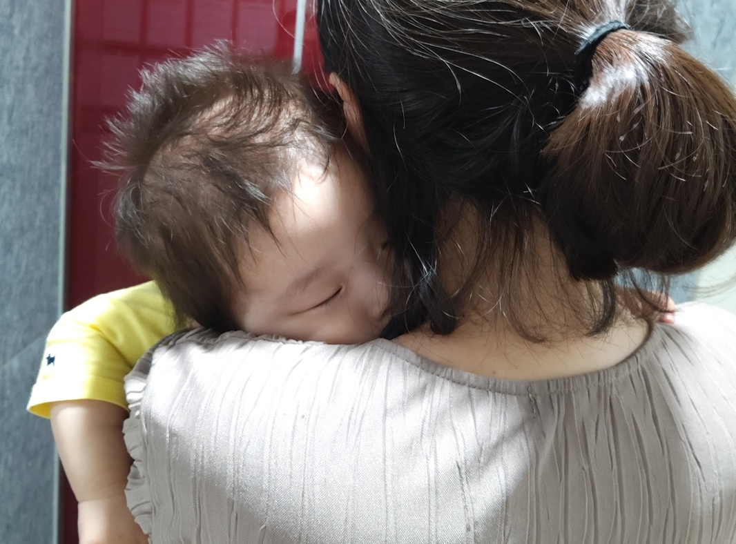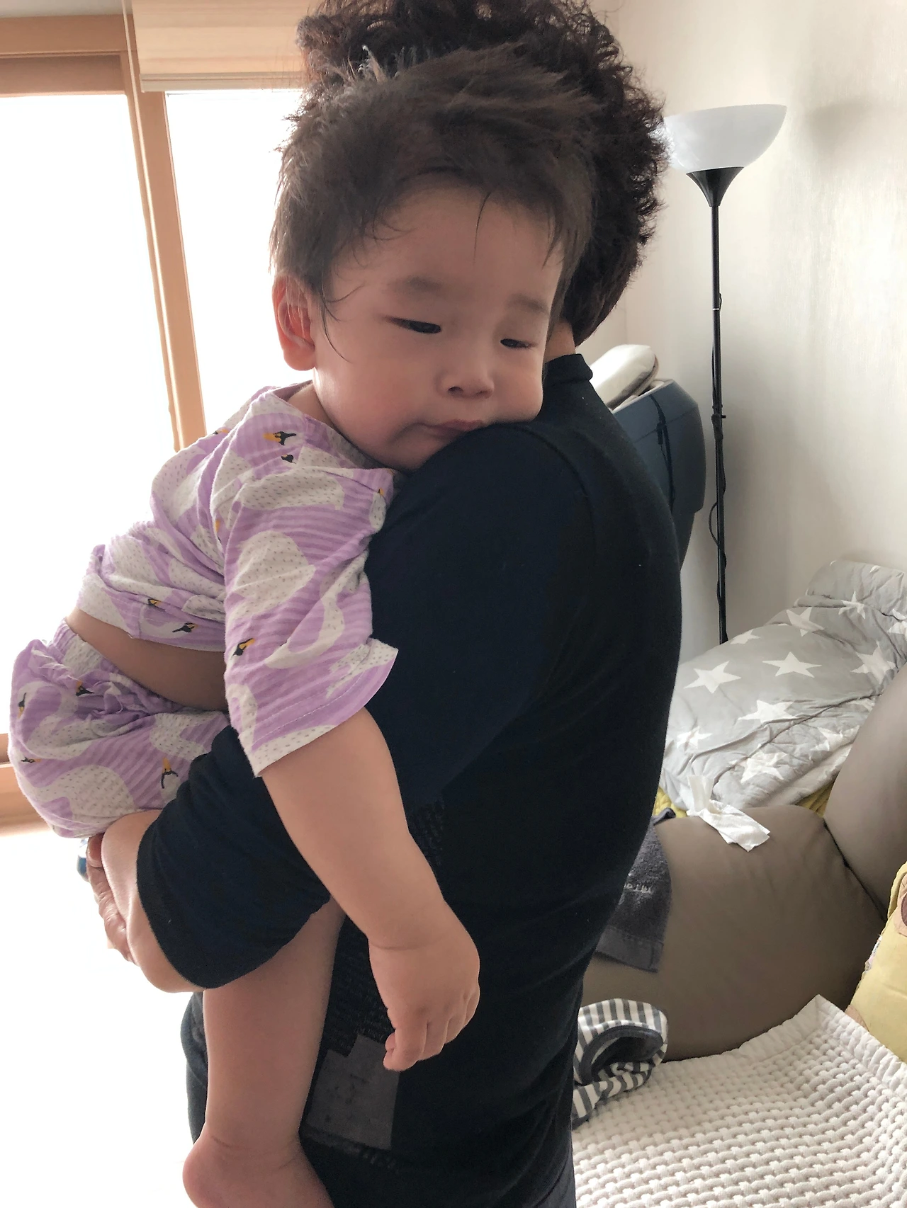 하도 보채니까 엄마가 내내 엎어주신다. 엎는동안 만큼은 조용하다. 이때는 또 역시 몰랐는데, 코감기에는 코 얼굴 부위를 좀 높에 해줘야 숨쉬기가 그나마 나서 잘 잘수 있다고 한다. 누워서는 콧물이 뒤로 가서 막힘증세가 심해지는 것- 거의 앉으채로 자는, 엎혀서는 잘잔 이유였다. (육아는 참 어렵다. 공부해야할 것 투성이- 애미는 그저 미안합니다)