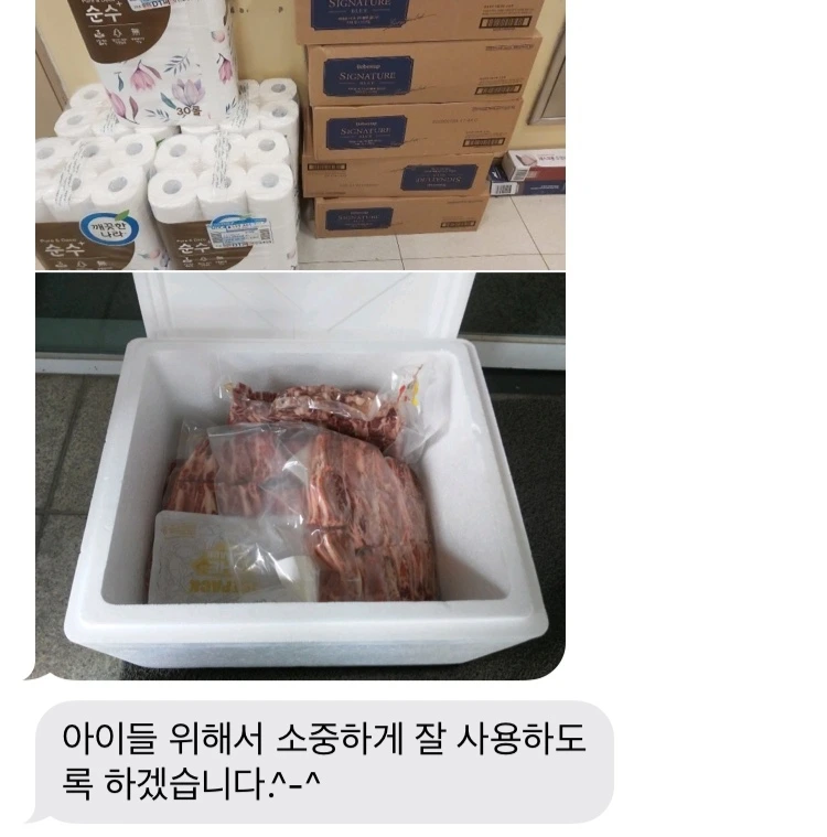 최종적으로 우리집 근거리의 은평구 한 보육원과 남편이 유독 아끼는 전라도 광주의 영아임시보호소를 메인으로 컨택해서 필요한 물건들, 소고기부터 물티슈 기저귀 등을 주문했다. 다른 용산구와 제주의 보육원과 미혼모센터는 필요한 물건의 매칭이 쉽지 않아 가장 많이 쓰는 물티슈와 아기용 세제로 대신했다. 큰 나눔은 아니라 이름을 밝히지 않고 주문을 넣었더니 미혼모 단체에서는 판매한 물티슈 업체한테까지 연락해서 내 연락처를 추적해 감사의 인사를 전해주셨다. 역시 별거아닌 도움은 없는가보다. 감사했다.
