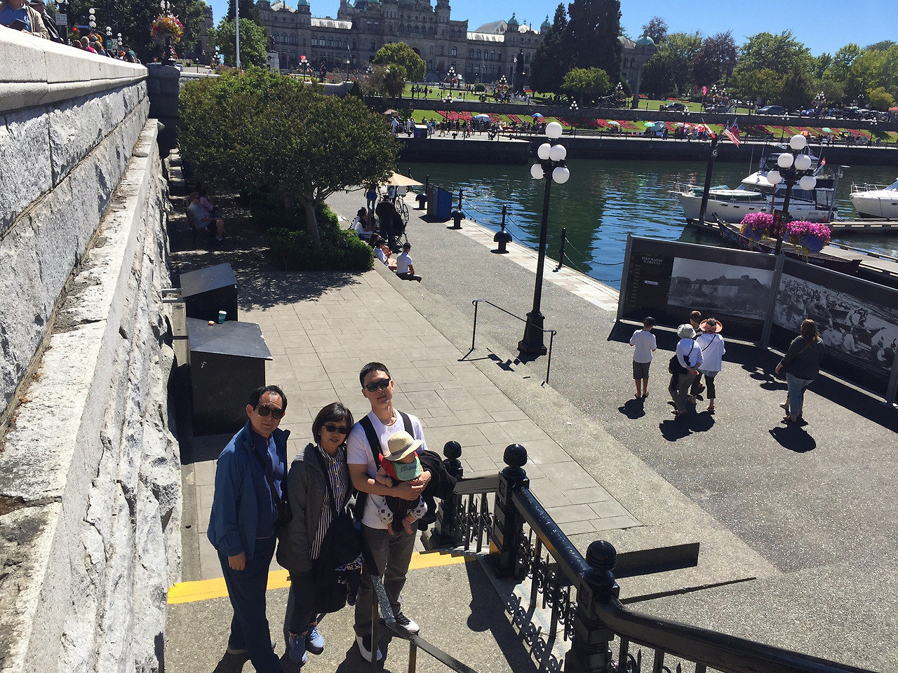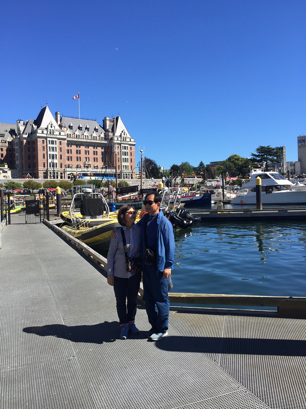 빅토리아 도착하자마자 우리는 숙소로 향했다. 몇 블럭 항구에서 떨어져 있는 스위트룸을 예약했었다. 바닷가가 보이는 스위트룸은 예쁜 발코니가 있었고, 날씨또한 정말 좋았다. 가격이 좀 쎈 편이었지만, 남편은 한국에서 오신 장인어른, 장모님은 좋은곳에 묵어야 한다며 큰맘먹고 예약했던 곳이다.