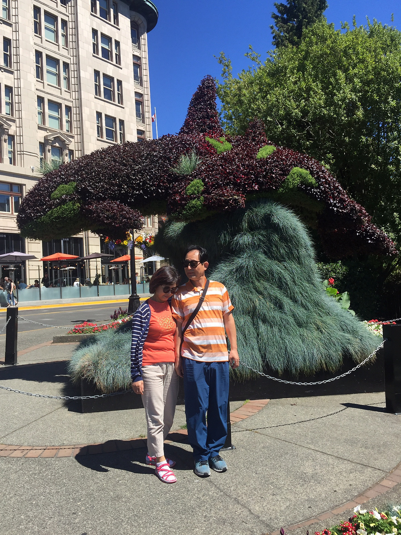 다음날 일찍 부차드 가든을 향했다. 차로 이동해야하는 거리기는 하지만, 빅토리아에서 제일 유명한 관광명소중 하나 이다. 나랑 남편은 여기 그 전에도 몇번 와보기는 했지만, 부모님을 꼭 데려오고 싶어 또 방문을 하기로 결정했다. 오프닝 시간에 가서 빠르게 둘러보고 사진도 찍고 했는데, 미국에 오시기 전에 방문한 한국 외도가 그렇게 좋았는지 이 부차드 가든이 한국 외도만 못하다 라는 소리를 차 안에서 못이 박히게 들었다. 많은 돈을 들여 입장료를 내고 갔다온 나는 그 소리에 조금 기분이 안좋았던것으로 기억한다. 한국에서 외도를 갔다온지 얼마 되지않은 한국 사람들에게 추천하면 안되겠다 생각했다.