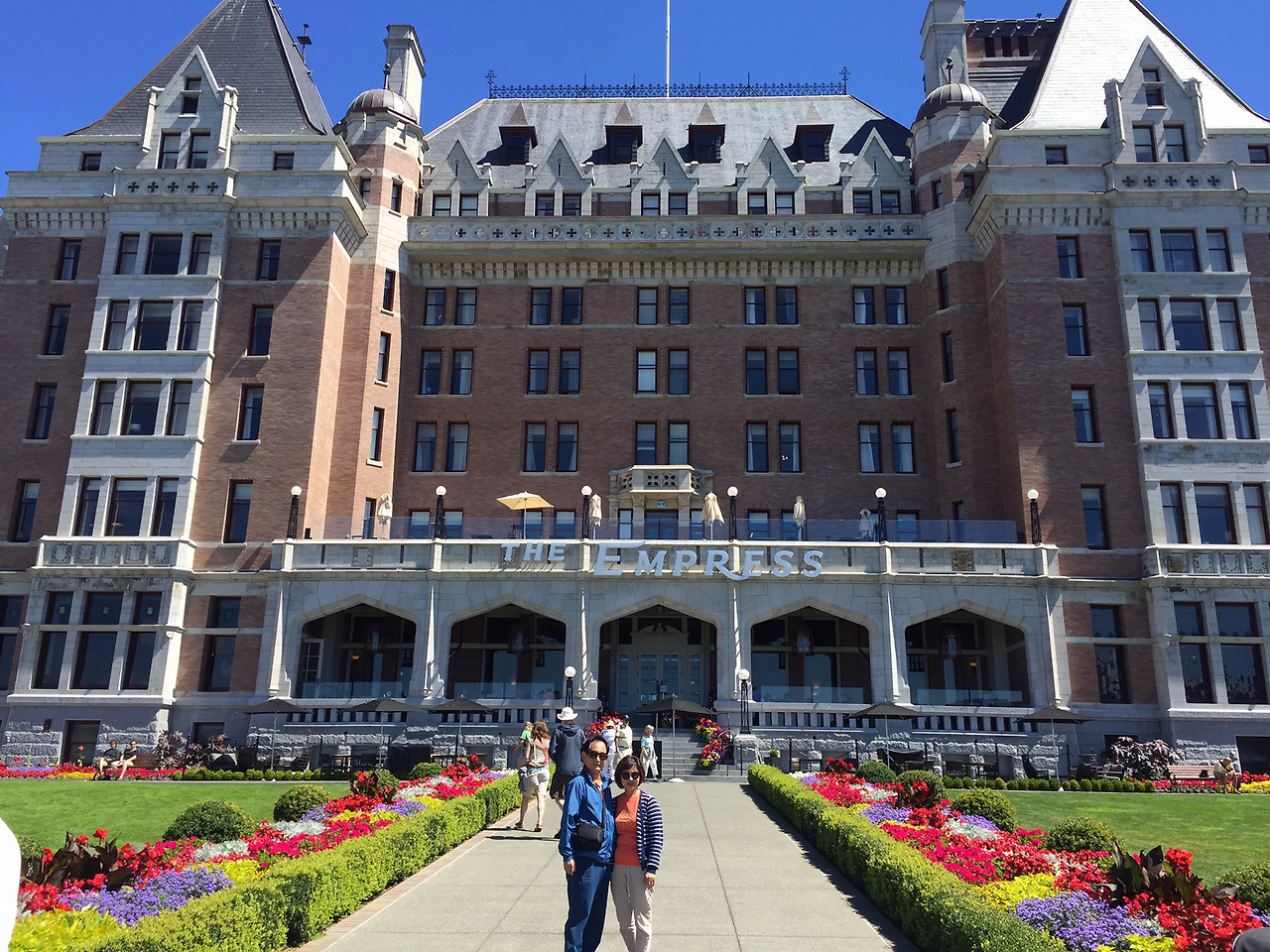 빅토리아의 관광명소들을 여기저기 다 둘러보러 다니며, government street을 휘젓고 다니고, 여기저기서 인증샷을 남기며 마음속 추억으로 새기며 하루를 바쁘게 돌아다녔다. 빅토리아에서 유명한것이 사진에 보이는 Fairmont Empress호텔에서 (제일 오래되고 유명한 호텔) 차 마시는 코스가 있는데, 너무 비싸고 도저히 차 마시는데 5만원 상당의 돈을 쓸수 없어서 패스... 대신 우리는 가까이에 있는데 가서 차를 더 싼 가격에 마셨다.