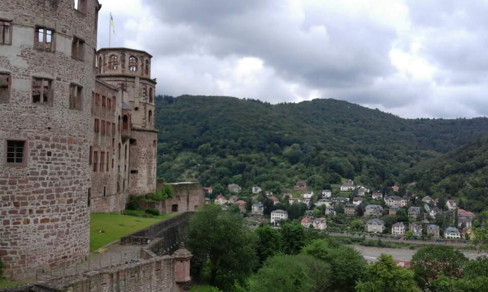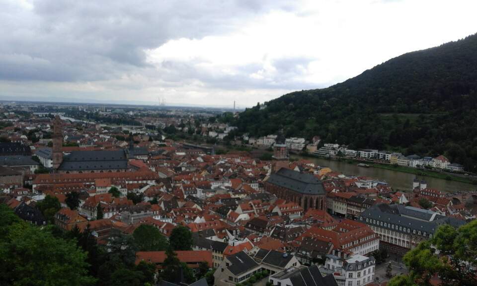 성에오르고 나서야 하이델베르크가 산과 강 그리고 성이 어우러진 아름다운 도시, 아니 마을이라는 사실을 알았다. 성에서 바라보는 구 시가지는 마치 미켈란젤로 언덕에서 바라보는 피렌체의 모습과 비슷했다. 일관된 지붕 색이며 산에 듬성듬성 박혀있는 집들까지도.