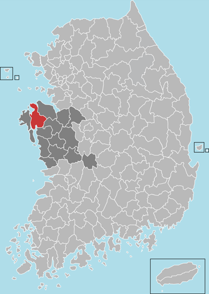 서산시의 위치는 충청남도의 서쪽 끝 부분에 태안시와 함께 위치해있다.