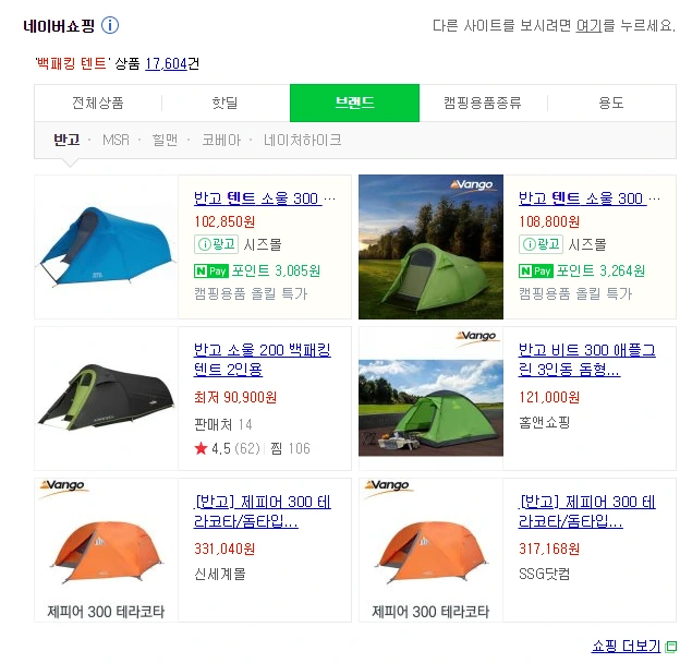 검색해보니 많고도 많은 백패킹용 텐트들이 등장한다.