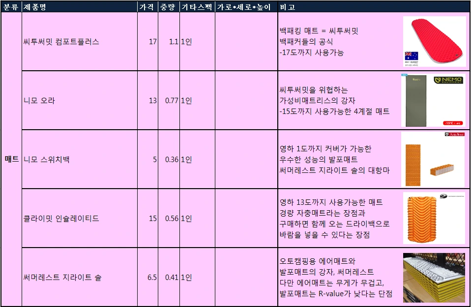 과연 어떤 매트가 나의 캠핑에 적합할지 많은 후기를 읽고 후회없는 선택을 하기 바란다.