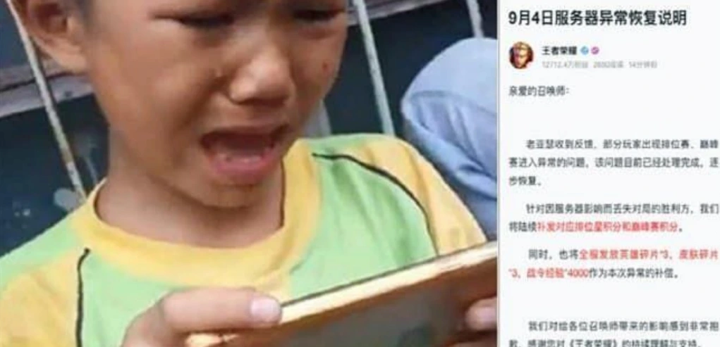 중국정부의 게임규제로 유저들이 금요일, 주말로 몰리자 게임서버가 폭발하여 게임을 즐길 수 없는 어린아이가 울고 있다.개인의 자유와 시장경제를 정부가 강압적으로 통제하는 모습을 시진핑의 중국은 마오쩌둥의 대약진운동, 문화대혁명을 따라하는 것은 아닐지 의심스럽다.