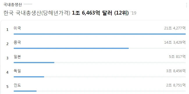 여기서 우리가 눈여겨 봐야할 것은 2019년 기준의 GDP 차이가 아닌 중국의 성장속도다.