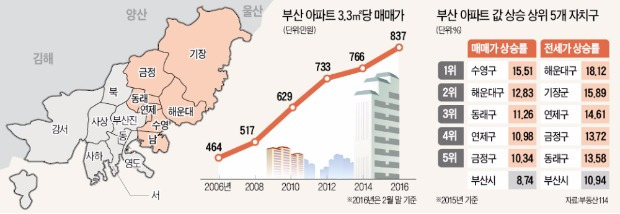2016년 부산 아파트 평당 매매가가 800만원을 돌파하였다.