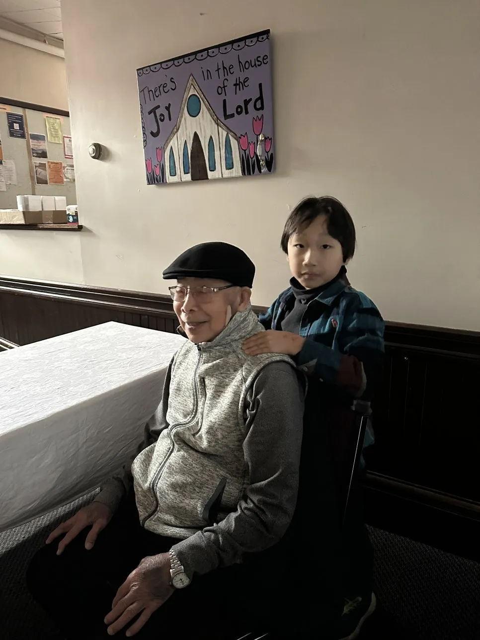 할아버지의 소개로 우리는 울프빌 교회 성가대에 들어갔다. 사실 나는 코로나 기간부터 교회에 다니지 않았기 때문에 나는 몇 년 만에 교회에 다니는 것이었다. 어색할 것이라는 예상과 달리 빈센트 할아버지는 10여 명이 되는 성가대 대원들에게 나랑 엄마를 소개해줬고 우리는 부활절 칸타타부터 함께 준비를 했다. 주중에 하루 교회에 가서 성가대 연습을 할 때마다 빈센트 할아버지는 우리를 보며 항상 환하게 웃어주셨다. 빈센트 할아버지를 유독 좋아하던 지노는 매번 할아버지에게 안기면서 "빈센트!" 하며 외쳤다.