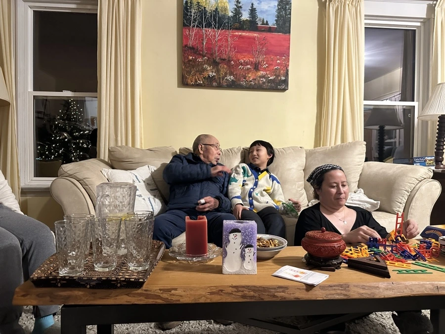 진 할머니는 꽃을 들고 간 우리를 향해 환하게 웃으시면서 지노에게 "학교 다녀와서 배고프지? 우리 딸들도 학교만 다녀오면 배고프다고 성화였단다."라는 말을 건네며 갓 튀긴 팝콘이 가득 담긴 그릇을 건네주었다. 지노는 팝콘을 먹었고 할머니가 꺼내준 손자들이 갖고 논다는 장난감을 보고 무장해제 당했다. 버젓이 한국 할머니가 눈을 뜨고 옆에 있었지만 진 할머니를 만난 지 30분도 안돼서 "Grandma!!"(할머니!) 하며 불렀다. 할머니가 직접 구운 쿠키와 차를 마시며 우리는 대화를 시작했다. 아니, 시작하려 했다. 그런지 얼마 안돼서 빈센트 할아버지가 오셨다. 교회의 단상에서 본 동양인 할아버지였다. 할아버지는 스쿼시를 치고 오셨다고 하시면서 소파에 같이 앉아서 우리와 대화를 함께 했다.