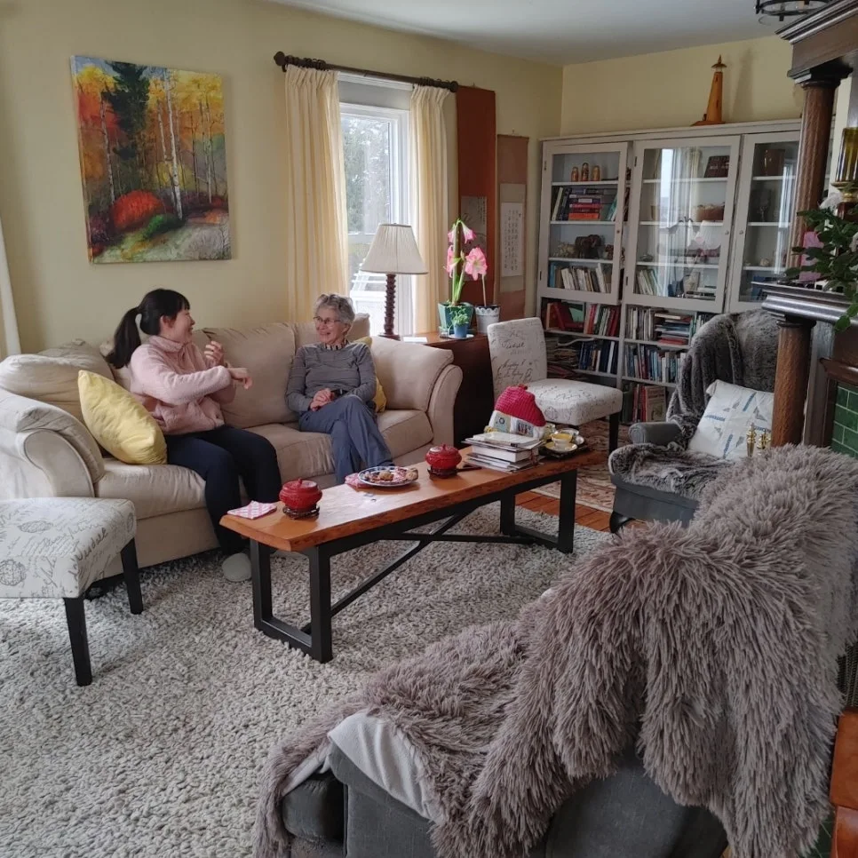 엄마는 캐나다에 가서 영어 때문에 많은 스트레스를 받았다. 사람들을 만나서 대화를 나누면서 에너지를 받는 엄마는 대화를 나눌 사람이 제한적인 이 상황에서 바보가 된 것만 같다는 이야기를 자주 했다. 다른 대도시나 1시간쯤 가면 있는 핼리팩스에는 도서관등에서 영어수업을 열어준다지만 이 동네에는 그런 곳이 하나도 없었다. 온라인 수업을 몇 번 받던 엄마는 이게 너무 안 맞는다면서 그만두었고 할아버지께 그 이야기를 했더니 빈센트 할아버지는 이런 이야기를 하셨다.