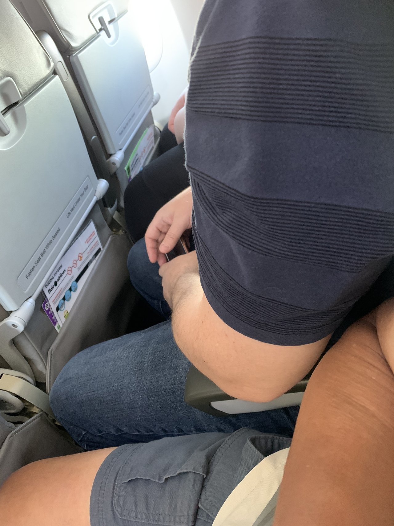 우씨! 같은 돈 내고 난 오늘 비행기 좌석 한 모퉁이에 이렇게 찌부러져서 왔다.