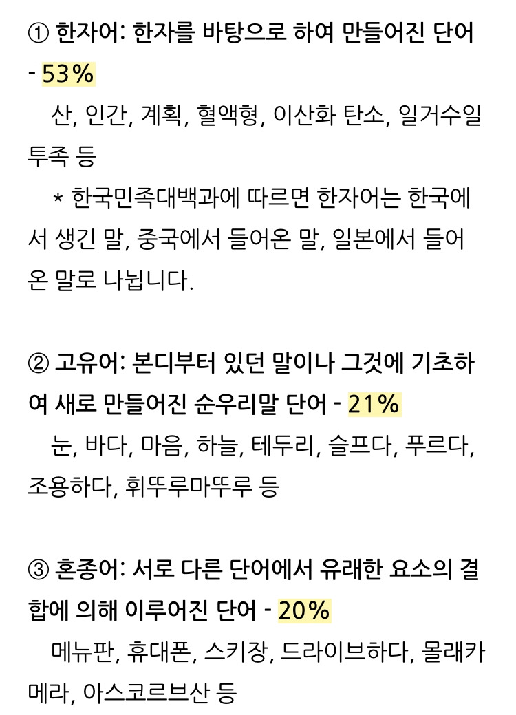 그 단어들을 몰아내려고 하지 않는다. 마찬가지로 한국어에도 중국의 한자어에서 유래된 말이 많고 근대 서구 문물의 도입과 더불어 진행된 전문 학술 용어와 어휘의 증가도 대부분 일본에서 한자어로 번역한 것을 그대로 들여온 것이다.