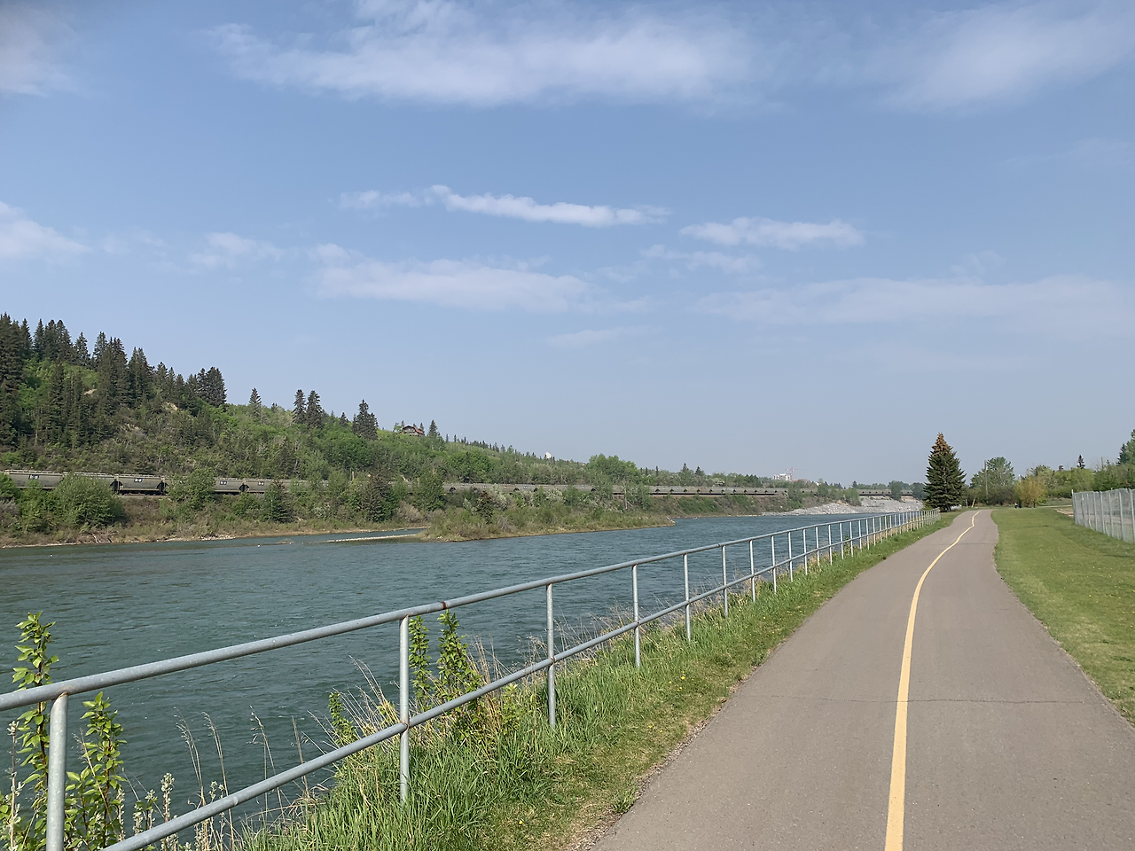 내가 좋아하는 것이 하나 빼고 여기에 다 있다. 파란 하늘, 흰 구름, 새, 숲, 강, 기차, 산책로, 자전거!