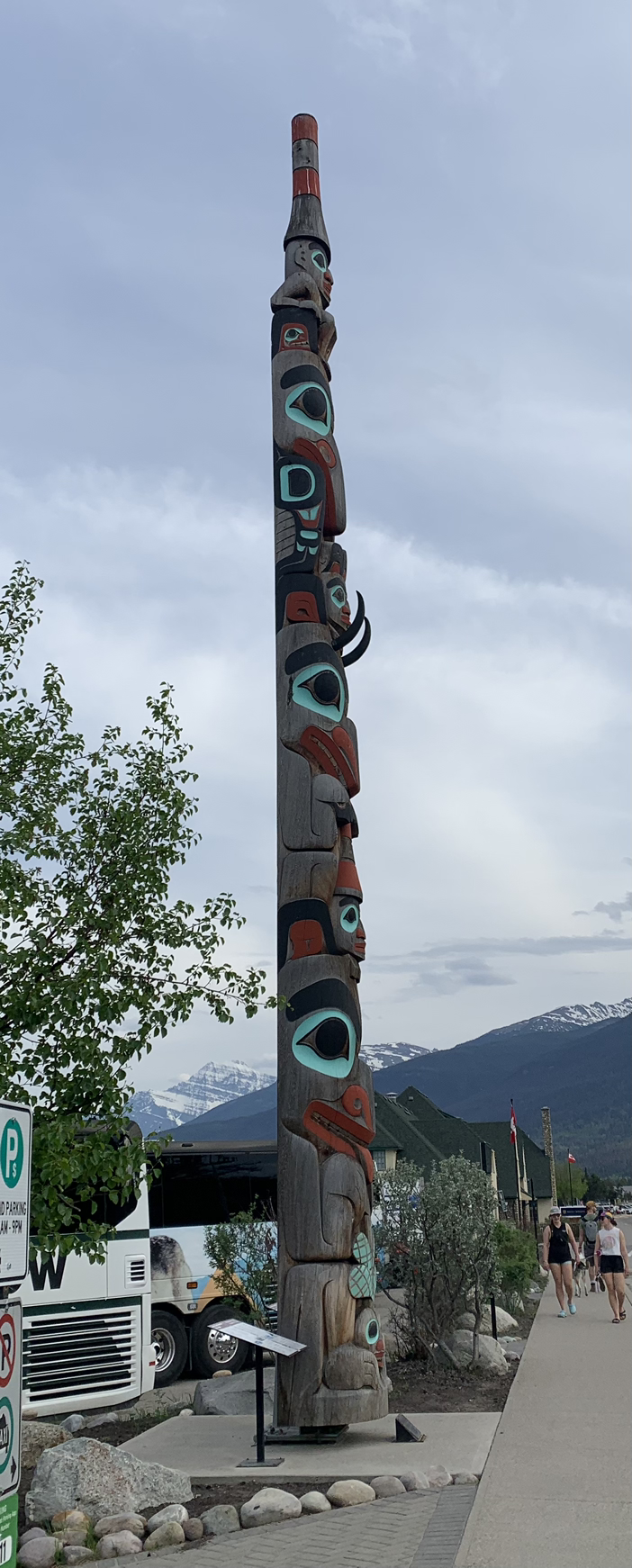 Jasper 기차역 옆에 세워져 있는 원주민의 토템폴(Totam pole)-동물에게 정령이 있고 그들이 자신들의 조상이라고 믿으며 자연과의 상호관계를 중시한다.