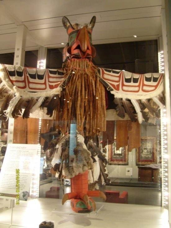 UBC 문화 박물관에 전시된 원주민 독수리춤 탈과 장식
