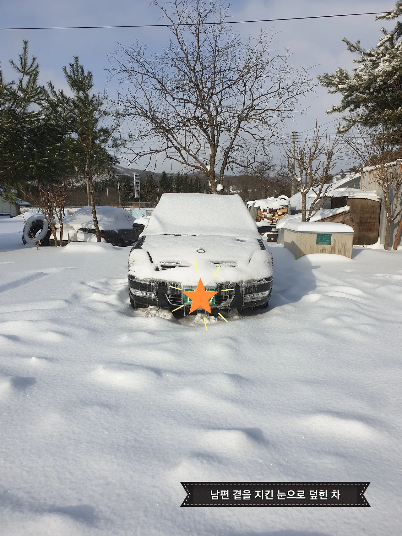 눈이 아주 많이 왔다고 세 번이나 차바퀴가 도는 듯했다고 그리곤 운동하라고 몸조심하고 있으라고