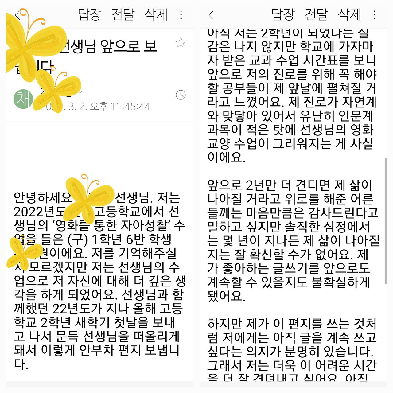 첫 수업이든 마지막 수업이든 수업이 주는 가치는 지대하다. 효손, 우주는 한국나이로 5살, 출생 연도 나이로 4살이다. 어린이집에 다닌다. 언제나 소중한 마음으로 우주를 바라본다. 그리고 늘 선생님들께 '잘 부탁합니다!' 인사를 건넨다. 어린이집 선생님들은 2, 3, 4살 아이들의 생애 첫 인성을 담당한다. 모든 아이들이 부모를 보고 따라 하고 배우는 것처럼 대부분의 아이들은 제일 먼저, 어린이집 선생님을 통해 무수한 사회를 접하게 된다. 어린이집선생님들은 인성, 인격, 가치관 형성의 가장 중요한 첫 단계를 담당하고 있다. 그렇게 성장한 아이들이 초중고를 다니게 된다. 형성된 인성, 인격, 가치관을 기반으로 해서 정체성 찾기를 통해 아이들은, 학생들은 자신의 길 찾기에 매 순간 맞닥뜨리며 성장해 간다. 그러하기에 교육을 담당하는 선생님들의 수업은 어떤 한순간도 소홀히 할 수 없다. 해서는 안 된다.