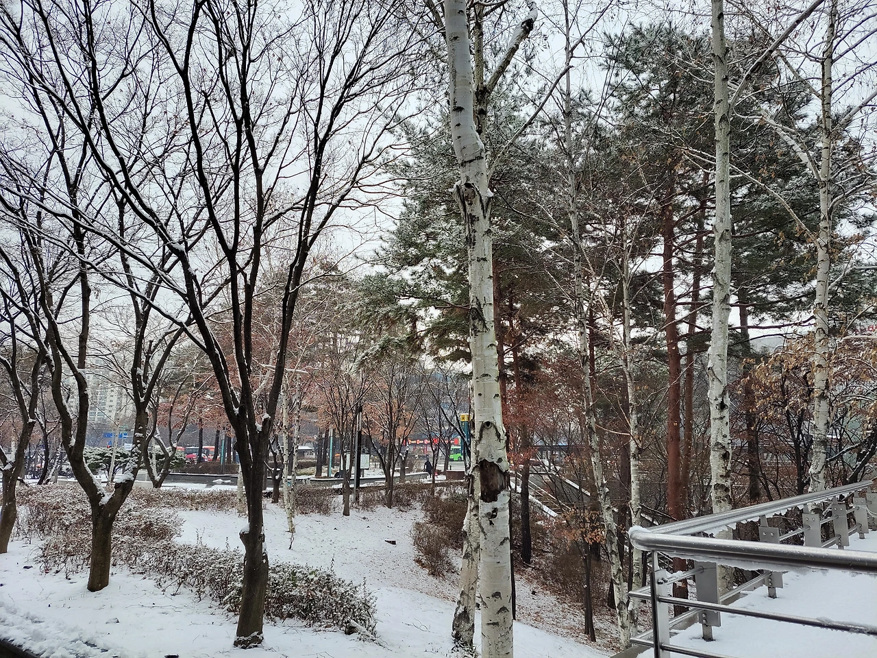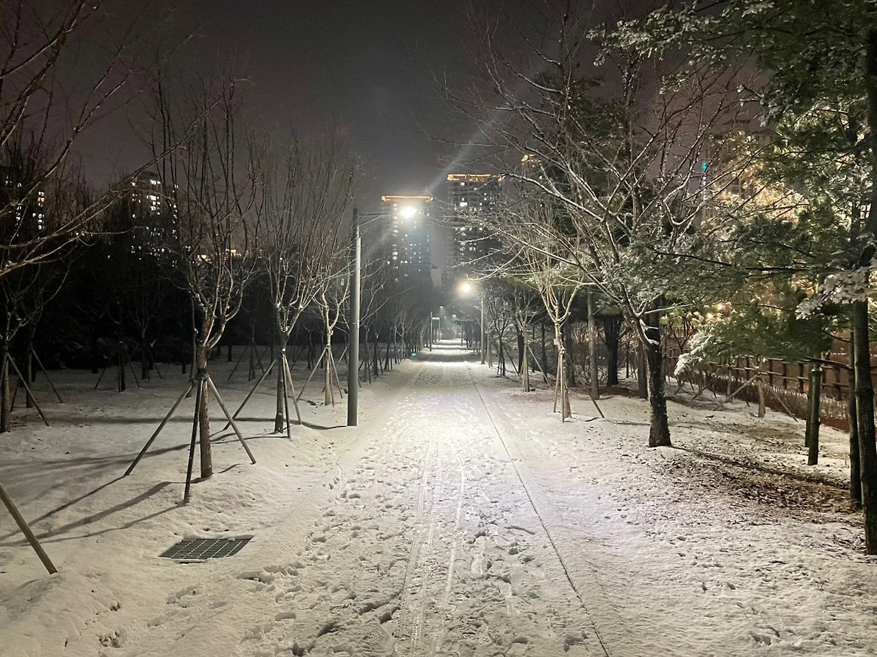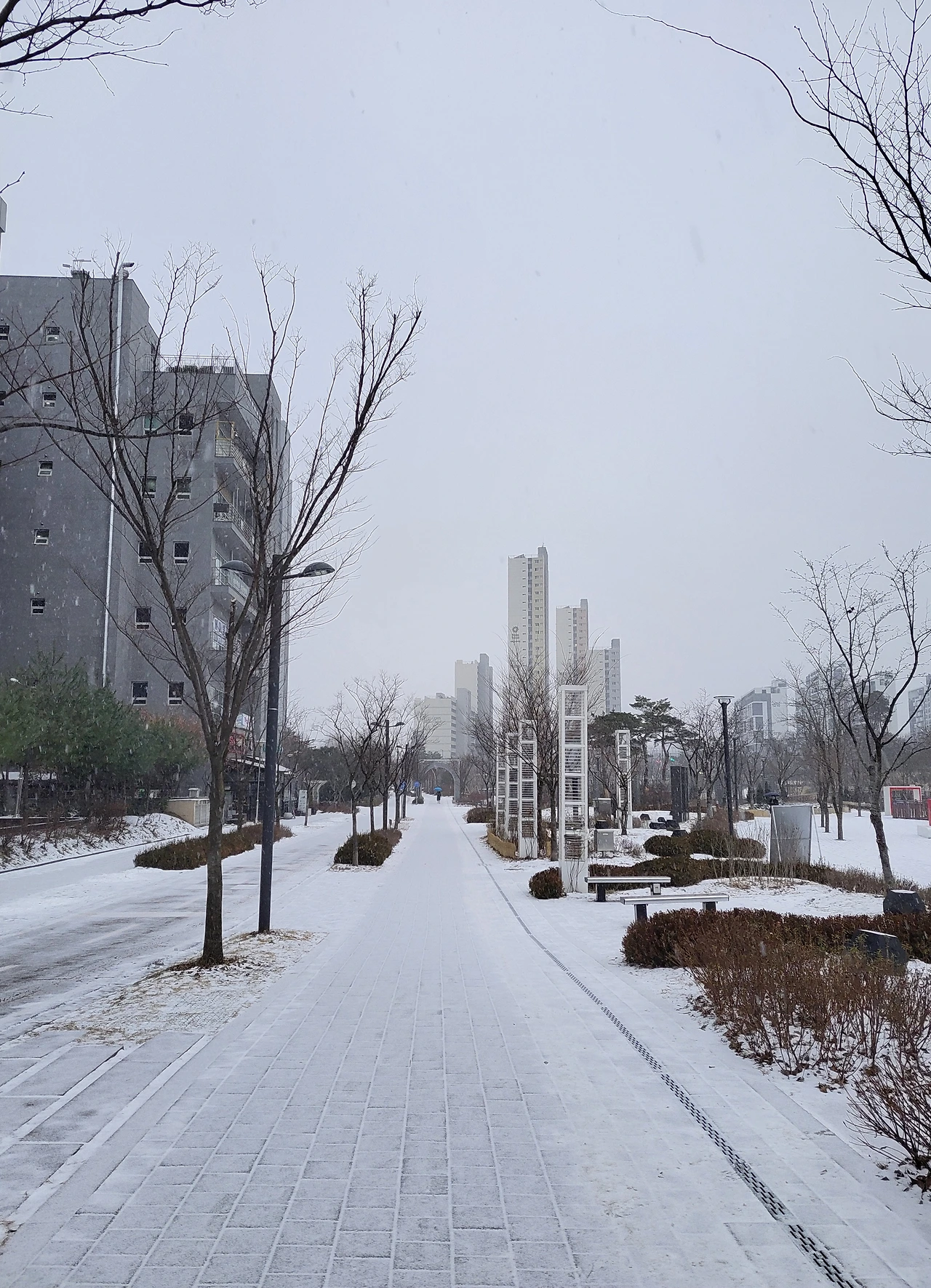 눈으로 덮인 오금공원의 설경은 겨울 왕국을 연상케 했다. 누군가는 겨울 왕국의 환상 속으로 걸어 들어가고, 여지 없이 또 다른 누군가는 눈이 멈춘 뒤에 교통과 발길을 걱정했다. 모두 다 옳다. 그러나 한순간이라도 그저 하늘에서 내리는 하얀 눈을 축복으로 볼 수 있는 환희와 꿈의 세계로 들어간다면 파묵이 전해준 대로 흰 눈이 건네는 한 편의 시를 경험하게 된다. 모두 한 번 눈 내리는 모습을 음미하며 ‘하얀 눈이 이끄는 대로 한순간이라도 맡겨 보면 어떨까?’ 하는 낭만적 사념에 사로잡힌다.