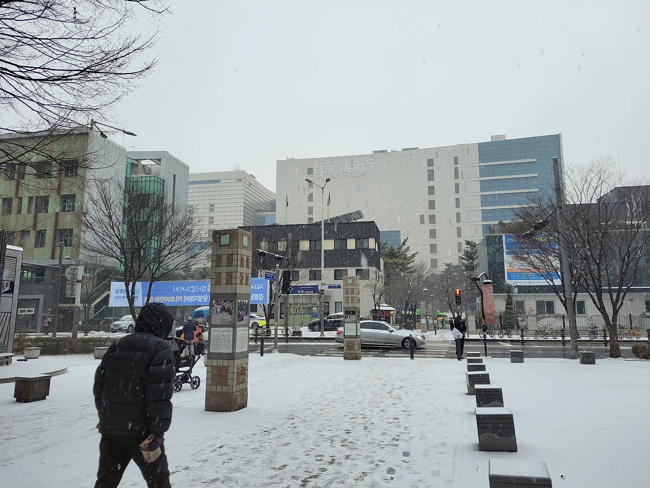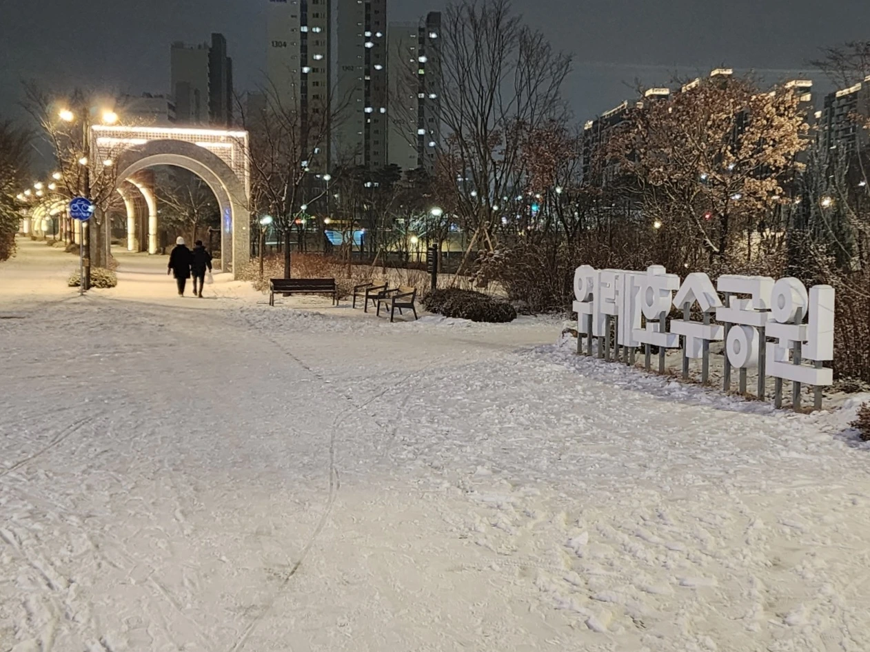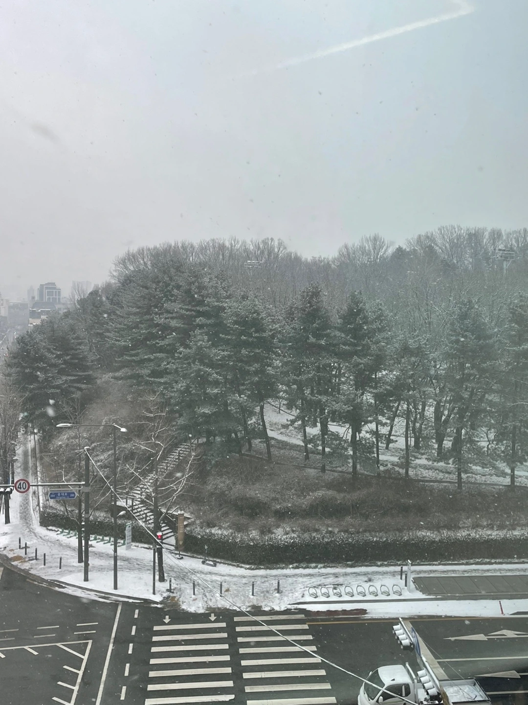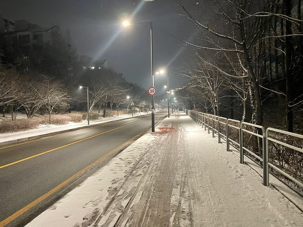 9일 새벽, 내리는 눈은 비와 눈이 섞인 진눈깨비 모습이었다. 진눈깨비가 내려앉은 거리에 한 발, 한 발 누군가의 발자국이 새겨졌다. 고요와 정적을 동반한 발자국은 흡사 ‘내가 누구게!’하고 말을 건네는 듯했다. 흐르는 시간과 더불어 진눈깨비는 어느새 커다란 함박눈이 되었다.