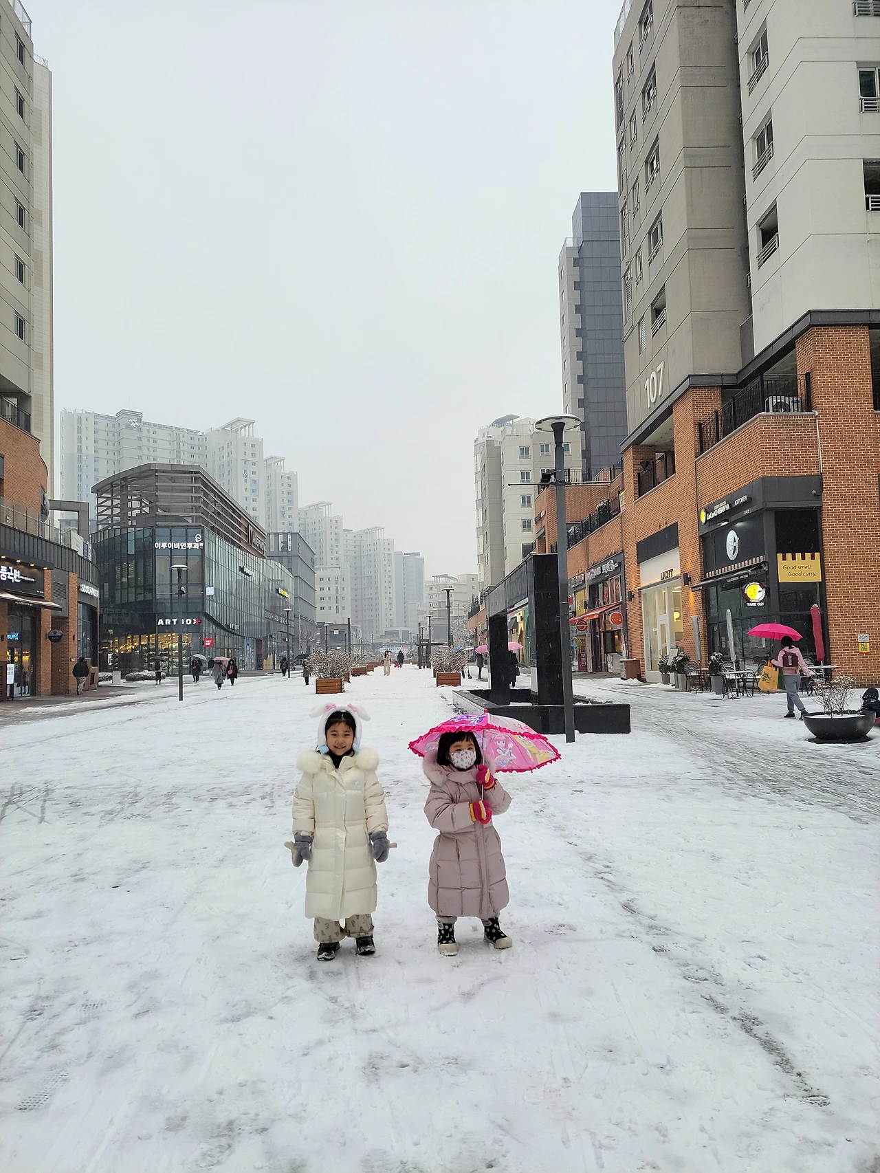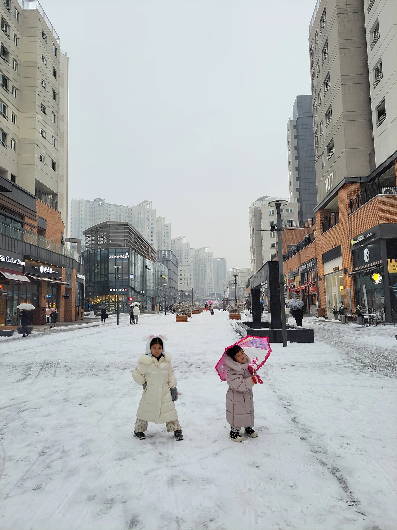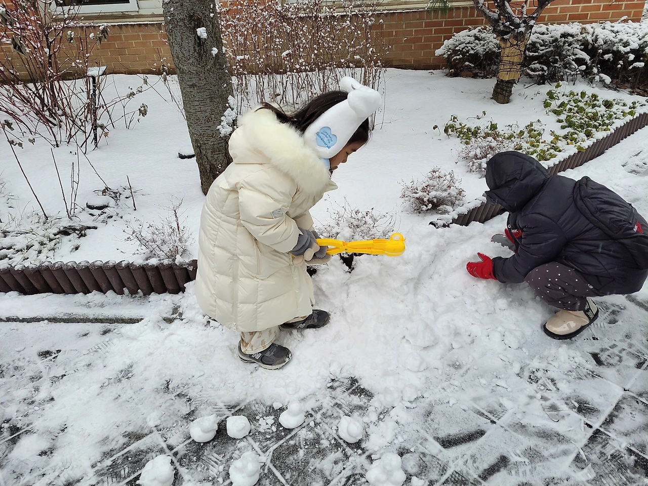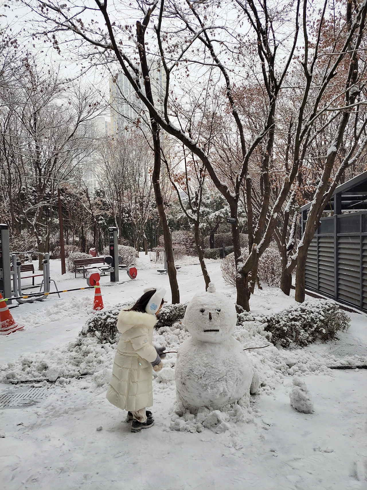 어린이집에서 하원하는 아이들이 삼삼오오 모여 ‘눈사람 만들래?’<Do you want to build a Snow Man?> 하며 눈사람을 만들었다. 내리는 눈을 앙증맞은 조그만 두 손으로 받으며, 두 팔 벌려 환호하는 아이들의 모습이 하얀 하늘을 넓게 열었다. 눈 집게 속에서 병아리, 눈사람, 눈공(snowball)이 순식간에 튀어나왔다. 아이들 웃음소리가 까르르 하늘로 퍼졌다. 동심을 불러내는 아이들 모습이 순간 설경이 주는 환상 속으로 빠져들게 했다.