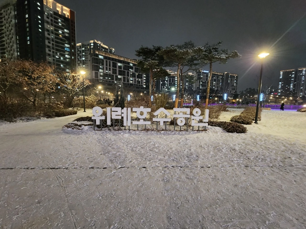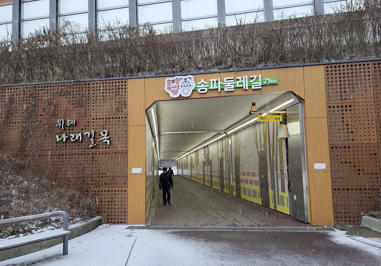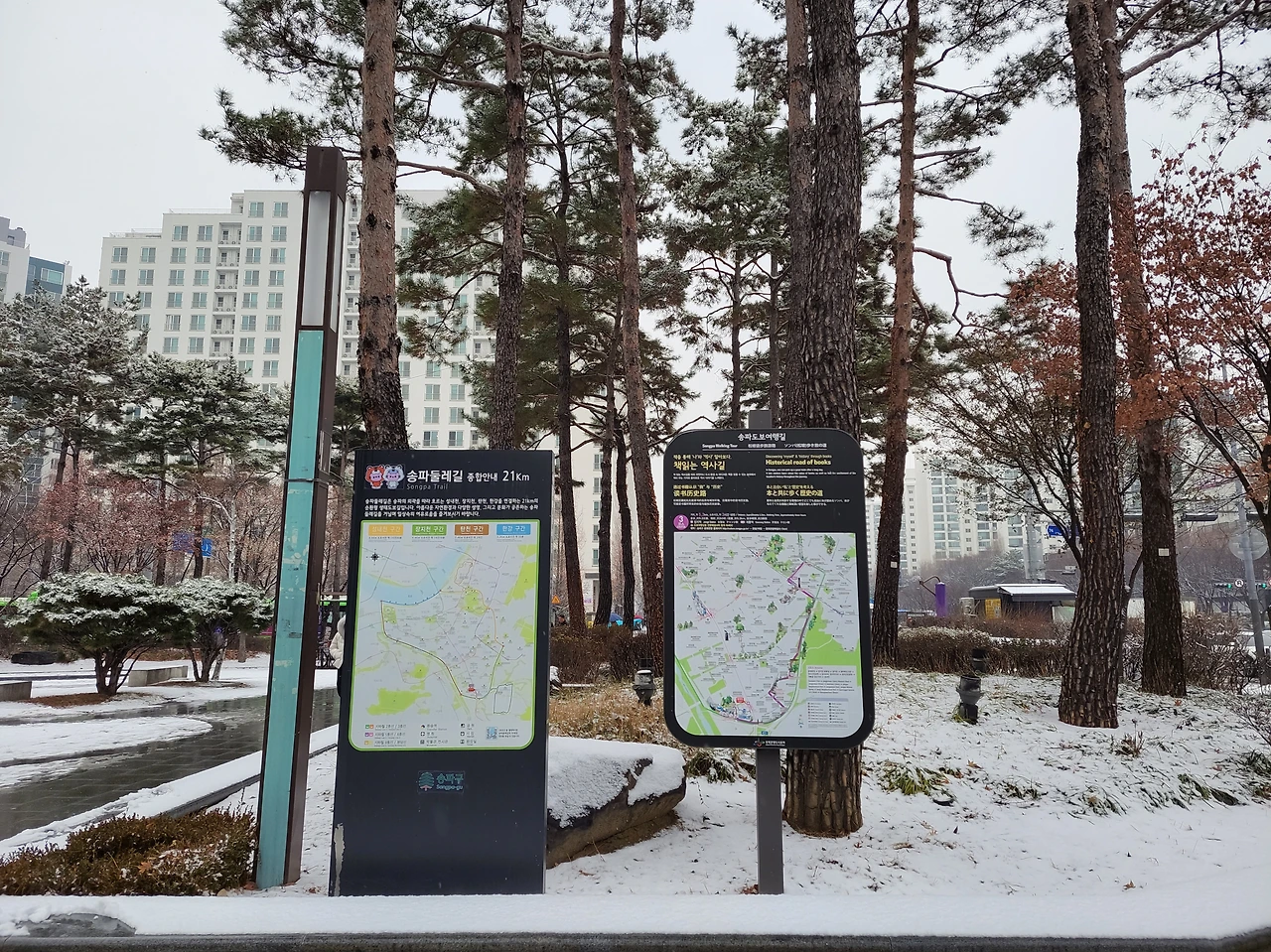 송파의 아름답고 멋진 설경을 간직하게 한 위례호수공원, 휴먼링, 트램로를 위시하여 오금공원, 잠실나루 인근, 장지역에 면한 장지천이 송파의 공간인 것은 구민의 한 사람으로 상당히 큰 행운이다. 눈과의 조우를 이뤄내는 장소, 물체, 시공간을 아우르며 눈을 맞으며 둘레길 안내도가 서 있다. 또 하염없이 아이들을 기다리는 설경 속 미완의 놀이터는 고요를 더한다. 그 장소들을 통해 보고 알고 느끼게 된 설경은 24년 새로이 시작하는 항해에 힘과 위안을 준다.