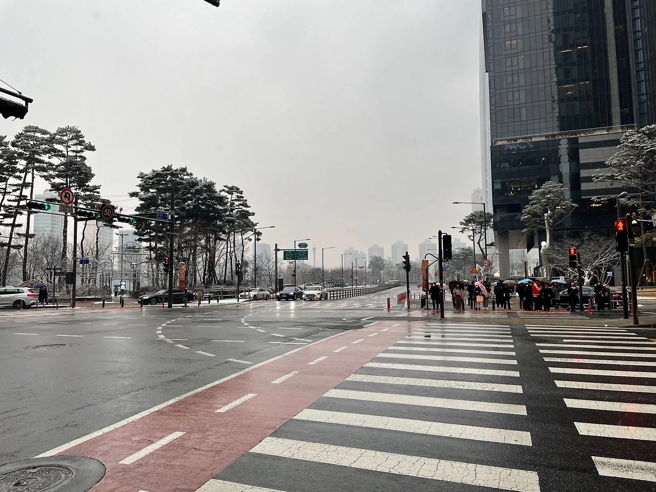 눈을 조우하며 위례호수공원을 따라 걷고, 오금공원을 지나고, 수많은 사람이 오가는 송파구청 앞 건널목에 선다. 무수한 발길에 흔적도 없이 내리는 순간 곧 사라져 버리는 내리는 눈을 아쉬움으로 바라본다. 내리는 눈을 피하고자 사람들이 쓴 우산의 행렬이 끊임없이 이어지는 송파 잠실의 어느 한 공간, 그 건널목에서 잠시 숨을 고른다.