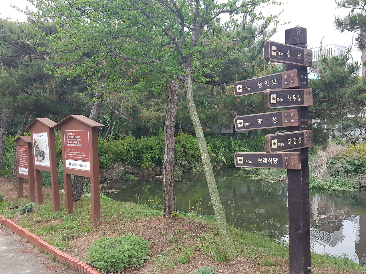 제일 먼저 경숙이가 안내한 곳은 연풍순교성지였다 성지에 들어서자 가랑비에 촉촉이 물먹은 파란 잔디가 넓게 쭉 펼쳐져 있다 성지를 들어서며 한 걸음을 떼는데 이미 숙연해지며 거룩이 주는 구별된 마음을 느끼게 된다 조심해서 성지를 둘러봤다 십자가의 길 수도의 길 그리고 성화의 길이 작은 팻말로 인도되는 길 곳곳마다 길 양쪽을 이어가며 성경의 말씀과 이미 순교하신 분들의 가슴에 남았던 말씀이 팻말에 새겨져 길가를 따라 세워졌다 그중에 몇 구절을 읽어봤다 경숙이는 깊은 의미를 주는 한 구절을 발견하고는 이것은 언니에게 해당되는 말이네 하고 손짓을 했다 경숙이가 이끌어 보여준 글은 정말 내가 살아왔던 삶의 해당되는 글이었다 그만큼 경숙이가 선배를 잘 알고 있다는 얘기다 숙연과 경건으로 마음을 붙잡는 성지 곳곳은 단 한 장면 풍광도 마음에서 놓치고 싶지 않았다 신앙의 길목이며 교차로 그게 아마 성지가 모두에게 주는 메시지일 것이라고 느꼈다 마음에 오로지 하나만을 생각했다 이 시간을 기점으로 더 정직과 성실과 진실로 당신 곁으로 가겠습니다 다짐을 하며 십자가 상 앞에서 고개를 숙여 기도를 했다