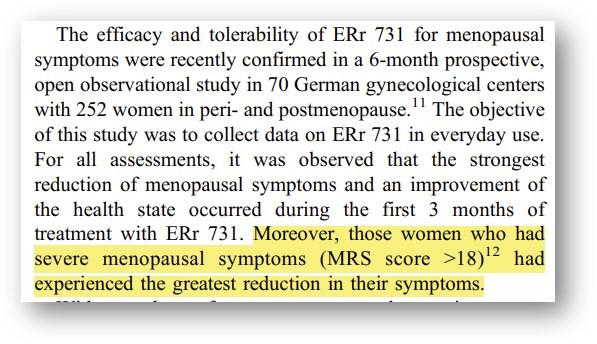 "게다가, 심각한 갱년기 증상 (MRS 점수 18 초과)을 가진 여성들은 증상이 가장 크게 감소했다."