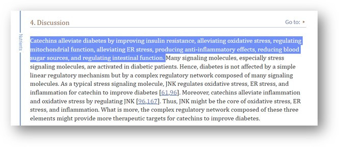 카테킨의 섭취가 체중 조절은 물론 당뇨병을 완화하는 데도 도움을 줄 수 있다는 보고들이 누적되어 왔습니다. 지난 해 저명한 학술지인 Nutrients에 게재된 한 리뷰 논문에서는, 180개의 선행 연구를 검토하여 다음과 같이 보고하였죠.