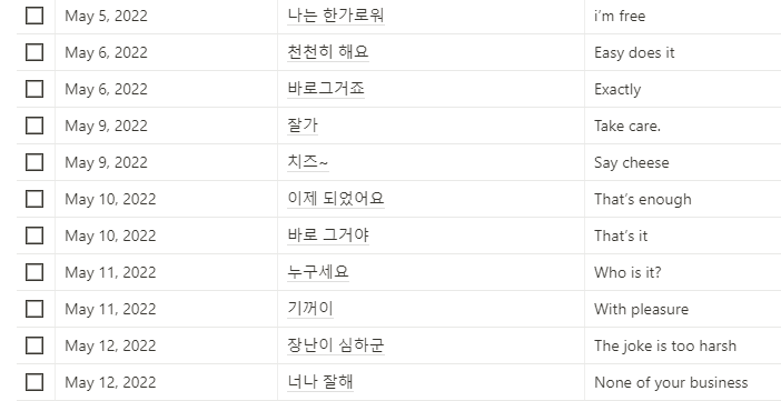 실제로 영어회화에서 자주 쓰이는 문장들을 필사해보라고 추천받았다. 그래서 매일 1 문장 정도 실제로 쓸 것 같은 문장을 여전히 정리하고 있다. 정리하고 내가 언제 어떻게 쓸 것 같은지 한번 생각해보고, 자연스럽게 나올 수 있도록 복습도 많이 하는 편이다.