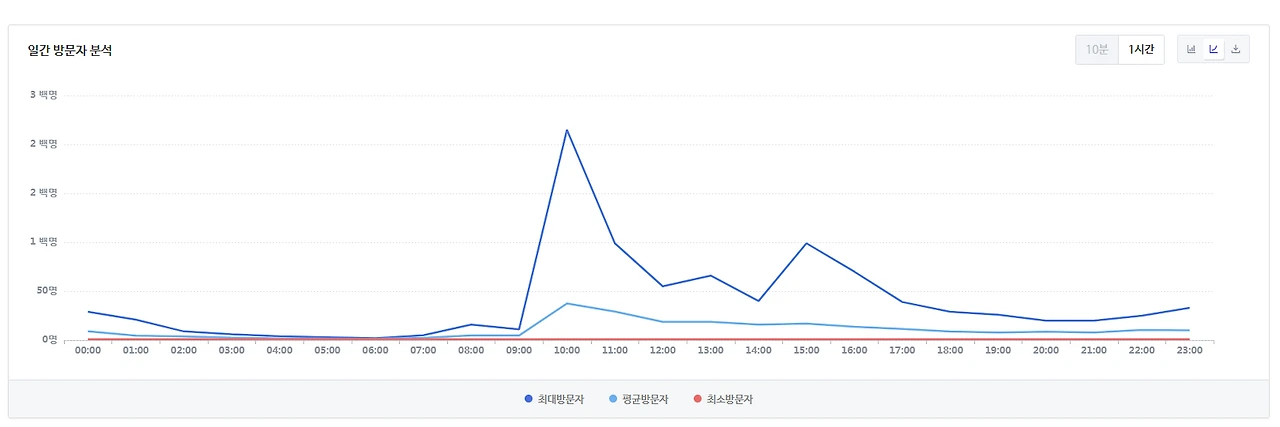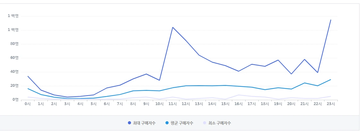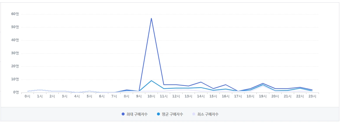 그런데 차트로 확인한 결과 실제로 오전 10시경에 방문자가 제일 많고 구매도 활발한 것으로 나타난다.