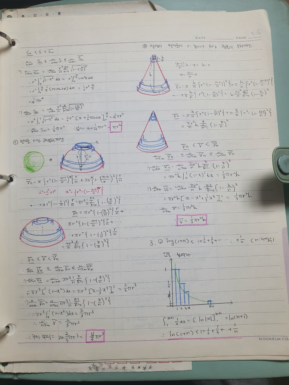 아직도 보관하는 당시 수학 노트 : 알록달록 유치찬란