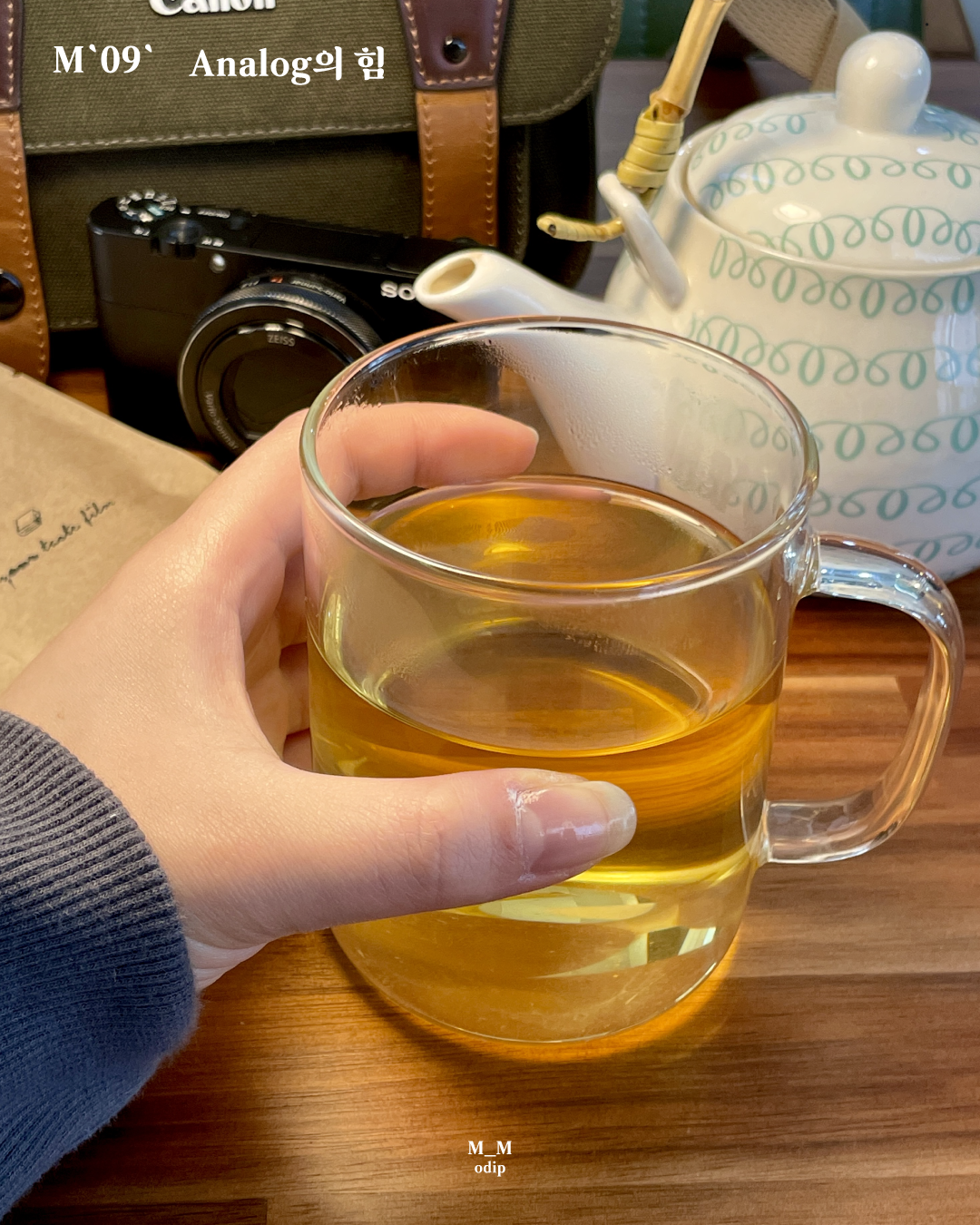 그 책방에서는 책을 구매해야만 읽을 수 있었는데요. 그때의 제가 읽고 싶은 책이 없어서 그냥 멍…하니 TEA 타임을 즐겼어요. 잔잔한 노래와 바스락거리는 작은 소음들 그리고 눈앞에 보이는 쌓여있는 책들 그 공간의 공기와 분위기가 굉장히 좋았습니다. 그러다 자연스럽게 나에게 아날로그 분위기가 가득한 책방이란 어떤 존재인지에 대해 의미를 부여하게됐어요.