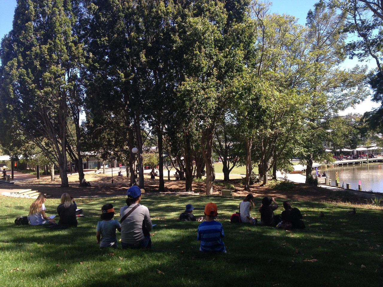 캠퍼밴에서 맞이하는 아침이다. 매우 특별한 느낌일거라 생각했는데, 생각보다는 평범했다. 다행히 아이들은 차에서 맞이하는 아침을 좋아하고, 신기해했다. 차를 주차하는 사이트 말고는 아무것도 없는 홀리데이파크였기 때문에 아침에 일어나 일단 체크아웃을 했다. 그 후에 경치가 좋은 근처 공원으로 갔다. 그 곳에서 샌드위치 만들고, 과일을 씻어서 호수가 보이는 잔디에 캠핑테이블과 의자 펴고 브런치를 먹었다.
