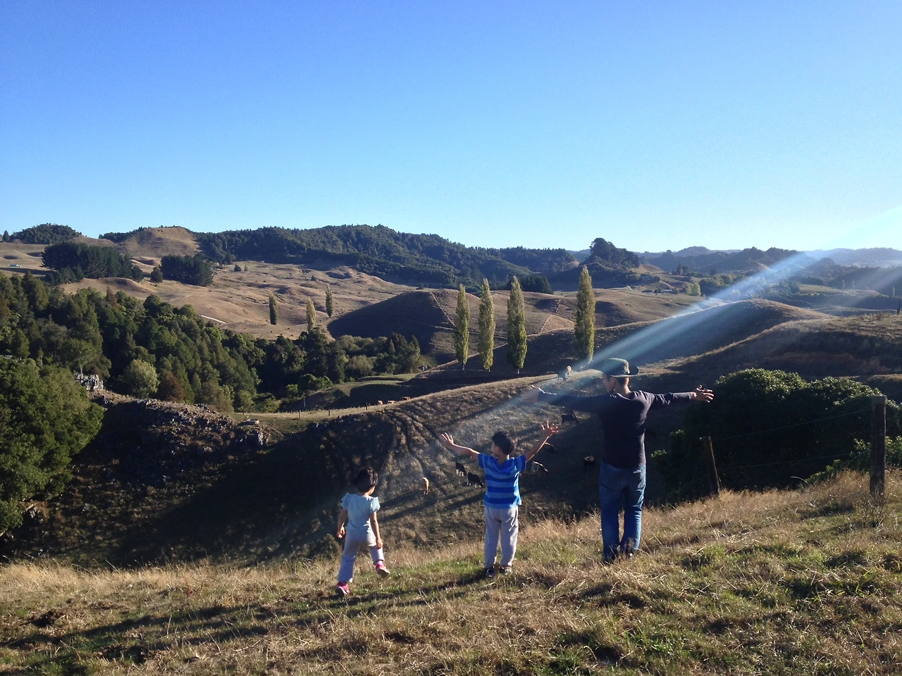 멋진 관람을 마치고, 산책을 했다. 왕복 1킬로미터도 안되는 숲길을 가면 정상에서 와이토모가 보인다고 해서 올라가봤다. 살짝 트래킹 느낌이랄까?! 주형이는 혼자서 잘 가고, 서윤이는 조금 안아달라고 했지만 그래도 숲길이라 혼자서 제법 걸어주었다. 정상에 올라가보니, 시원하게 뚫린 시야가 좋다. 한쪽에 소들도 가까이 보이고, 민들레홀씨도 많고, 바람도 시원하고, 가슴이 뻥 뚫리는 것 같다.