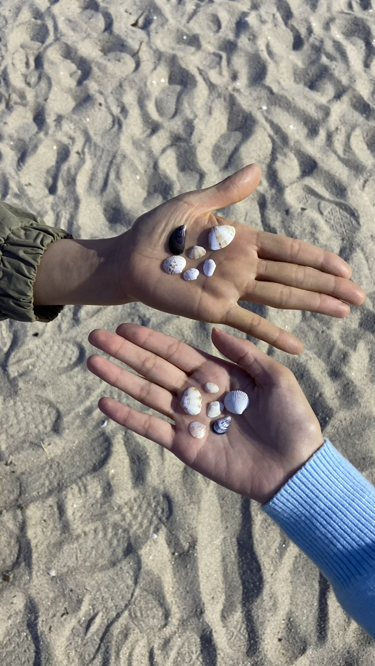 바닷물과 햇살이 섞인 듯한 눈부신 해변을 보며 카페거리에서 새삼 여유로운 시간을 보내다 바닷가에서 딸의 새끼손톱을 닮은 조개껍질도 주웠어요. 새삼 행복감이 차 올랐습니다.