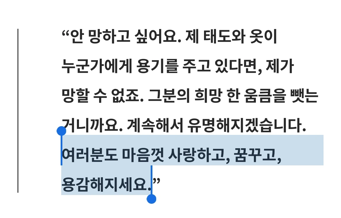대체 불가능한 사람이란, 누군가 자신에게 그 길을 왜 걸어왔냐고 물어봤을 때, 자신의 가치관에 빗대어 설명할 수 있는 사람이다라는 말을 알고 있다. 뜨겁고 차가웠던 나의 그때가, 누군가의 지금에 차갑고 또 뜨거운 영감이 되어 줄 수 있는 그런 사람이 되길 바라며.