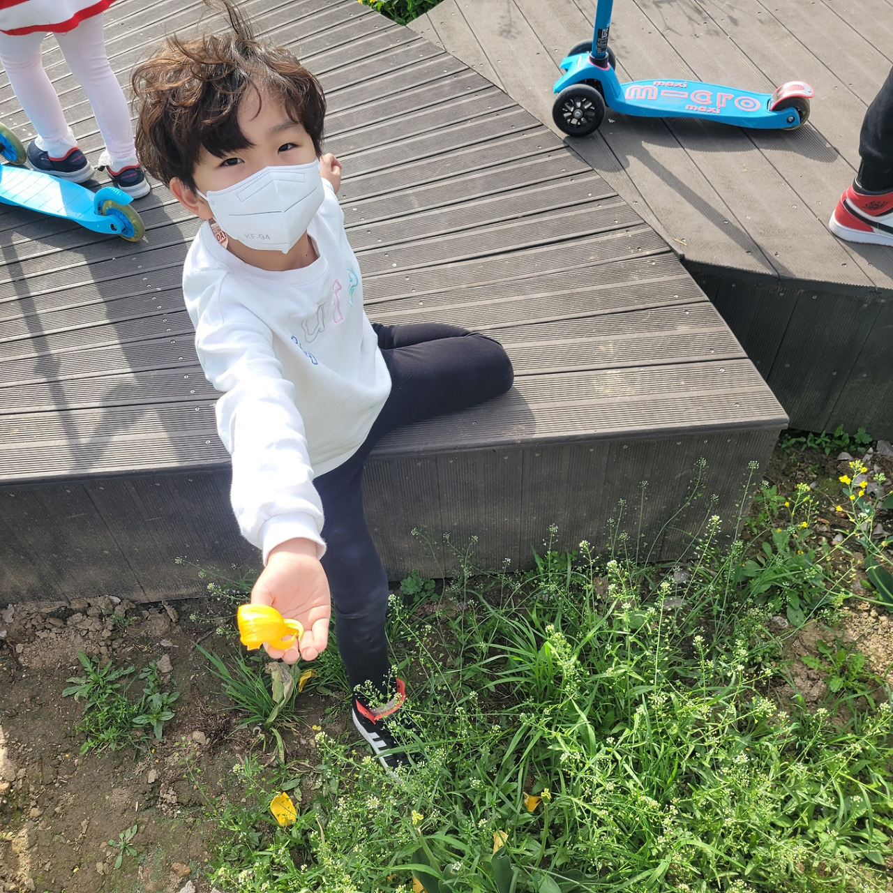 아이들이 찾은 자연물의 향을 느끼고 질감을 느끼는 것만으로도 오감을 만족시키는 놀이가 됩니다.