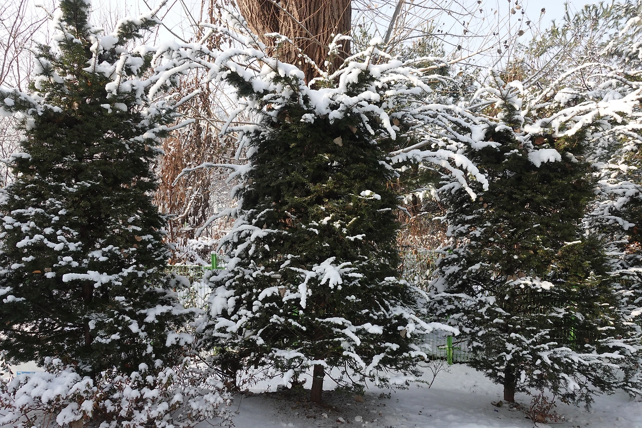 눈이 쌓인 이 세 그루의 나무가 어떻게 보이나요?